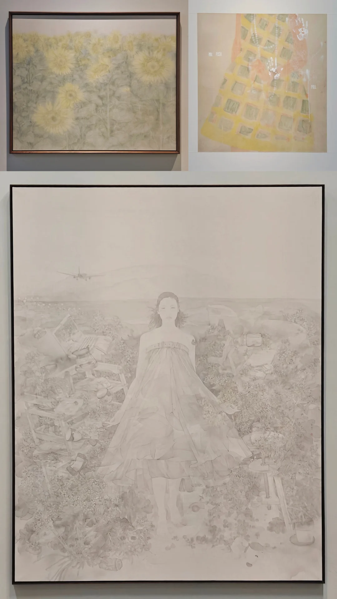 ▫️《希》第十二届全国美展入选作品,以熟绢积水渍法定格悬浮瞬间,隐喻当年多件社会悲剧却传递对未来的坚定希望。