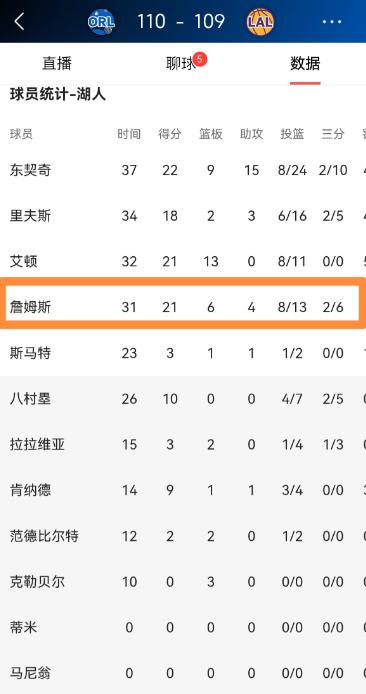 湖人巨星詹姆斯真是恨死东契奇了!在今天湖人主场以109:110不敌魔术的比赛中,詹姆斯的表现非常的出彩,然而由于东契奇的拉胯,詹姆斯的精彩表现化为了泡影。 首先要说明,其实并没有詹姆斯恨死东契奇的说法,这只是外界的猜测,两人赛后都很克制,没有出现矛盾冲突,但这场湖人主场输给魔术的比赛,确实因为东契奇最后时刻的决策失误,让詹姆斯的努力白费了。 这场比赛是在湖人主场进行的,双方打得很胶着,从第一节开始就你来我往。 湖人开局打得不错,詹姆斯内外线都有发挥,东契奇则负责组织球队,帮队友创造得分机会,第一节结束湖人就领先了魔术。 到了第二节,魔术慢慢找回节奏,不断追分,湖人靠着詹姆斯的稳定发挥和东契奇的串联,勉强保持领先。 第三节比赛变得更激烈,双方交替领先,分差一直很小,湖人只是稍微领先一点点,悬念留到了最后一节。 第四节最后时刻,比赛进入白热化,比分反复打平,魔术先命中关键三分反超,詹姆斯紧接着扣篮回应,帮湖人重新领先。 之后魔术球员补篮成功,再次反超,留给湖人最后不到七秒的时间,暂停之后,教练专门为东契奇布置了最后一攻,东契奇借助队友掩护,跑出了很大的空位,防守球员离他很远,完全有机会直接出手三分。 可东契奇接球后没有直接投,犹豫了一下,然后把球传给了顺下的詹姆斯。 詹姆斯接球的时候已经失去了节奏,身体也没站稳,只能仓促出手,最后球没进,湖人以一分之差输了比赛。 这场比赛里,詹姆斯打得很努力,全程发挥稳定,不管是得分还是防守,都拿出了应有的状态,就算到了最后时刻,也敢主动承担进攻责任。 赛后采访时,詹姆斯没有指责东契奇,只是客观说东契奇当时有很好的出手机会,自己接球时已经失去最佳空间。 东契奇也主动承担责任,坦言是自己犹豫了,本该直接出手,错误在自己。 其实两人平时配合得不错,之前东契奇还说过和詹姆斯的默契越来越足,知道彼此想要什么。 这场比赛湖人输得很可惜,詹姆斯的精彩表现没能帮球队赢球,核心原因就是最后一攻中东契奇的决策失误。 不是东契奇不想赢,而是关键时刻心态不够果断,浪费了绝佳机会,也让詹姆斯整场的努力都化为了泡影。 虽然没有所谓的“恨”,但这样的失误,确实让球队错失胜利,也让詹姆斯的付出没能得到回报。 以上都是个人观点,对此您有什么不同的看法,可以在评论区留言讨论!!!