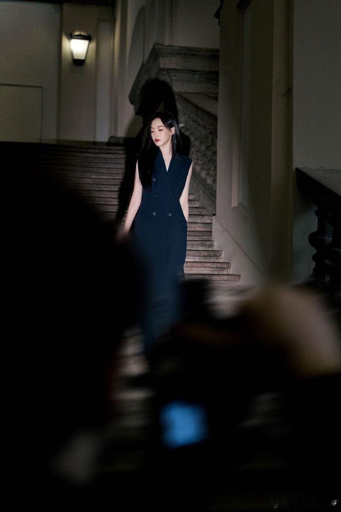 唐嫣好笔直的一条人 唐嫣米兰时装周太惊艳!黑色穿搭配黑长直,清冷又贵气,时尚表现