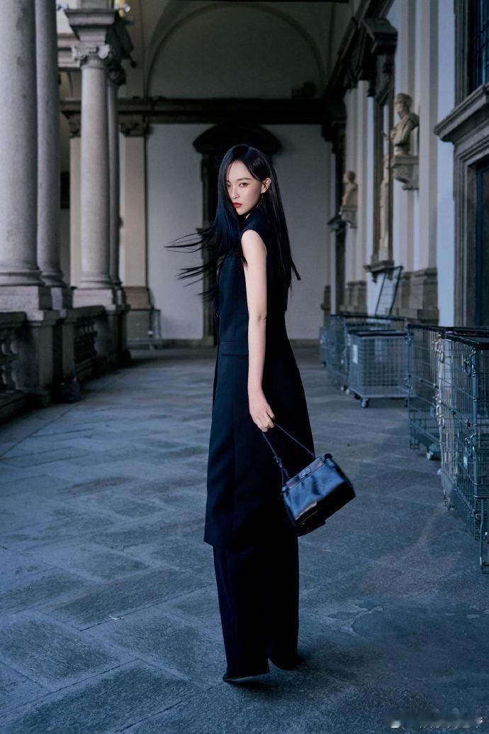 唐嫣好笔直的一条人 唐嫣米兰时装周太惊艳!黑色穿搭配黑长直,清冷又贵气,时尚表现力爆棚,笔直身姿美出新高度!