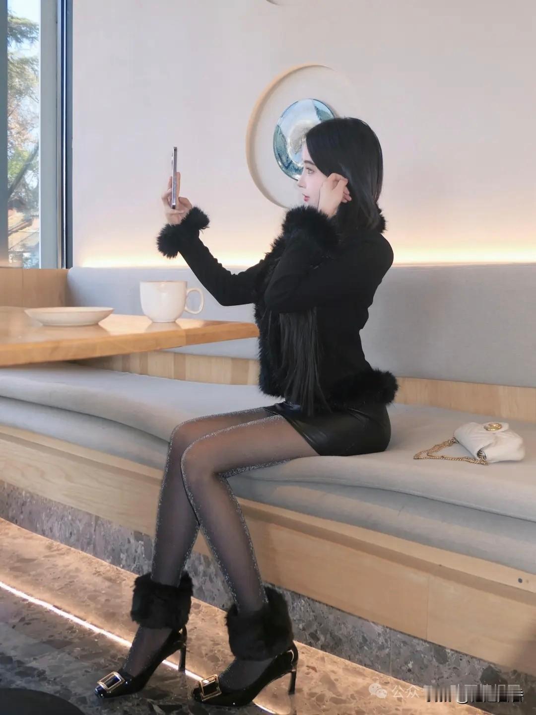优雅黑丝女郎,咖啡馆里的时尚大片!成熟稳重的美女你喜欢吗?