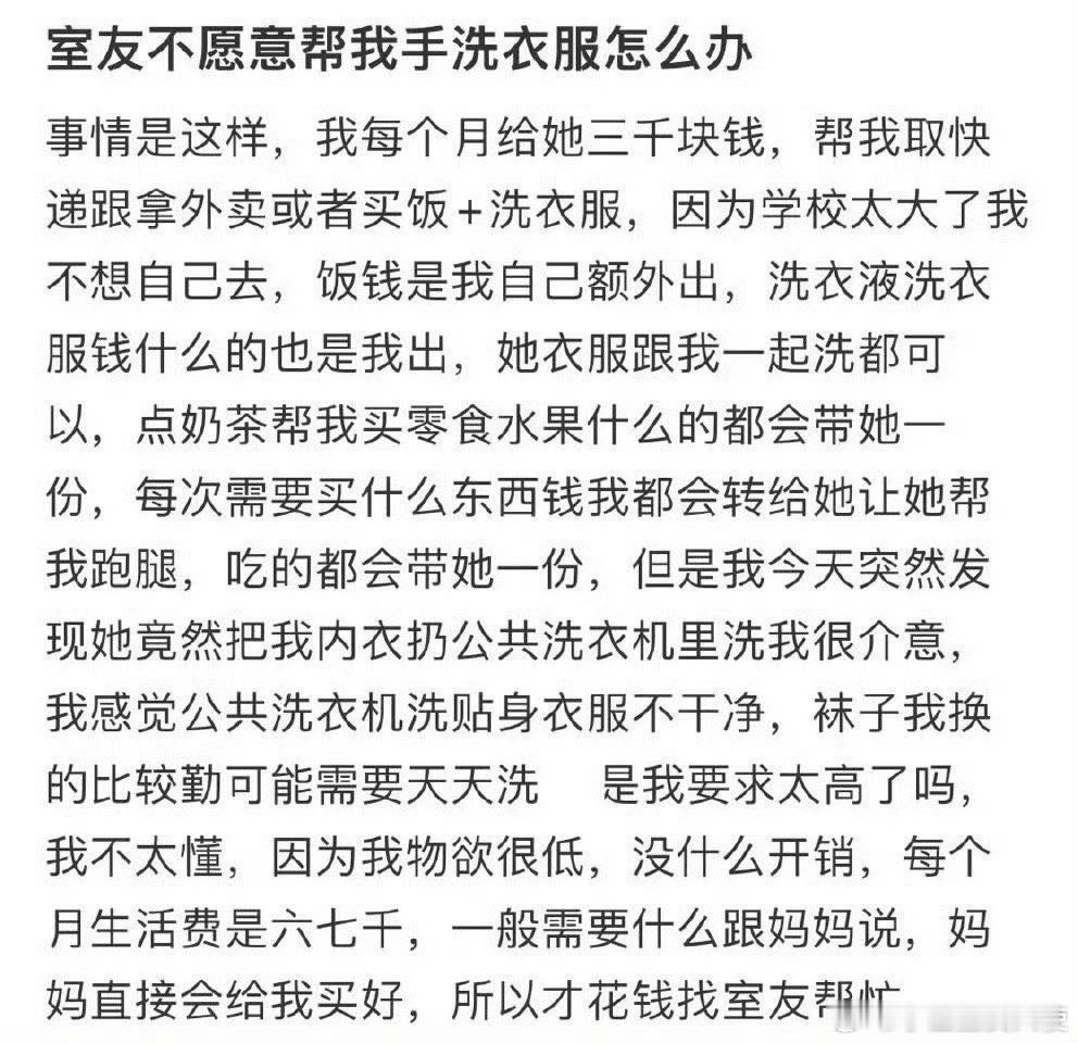 室友不愿意帮我手洗衣服怎么办