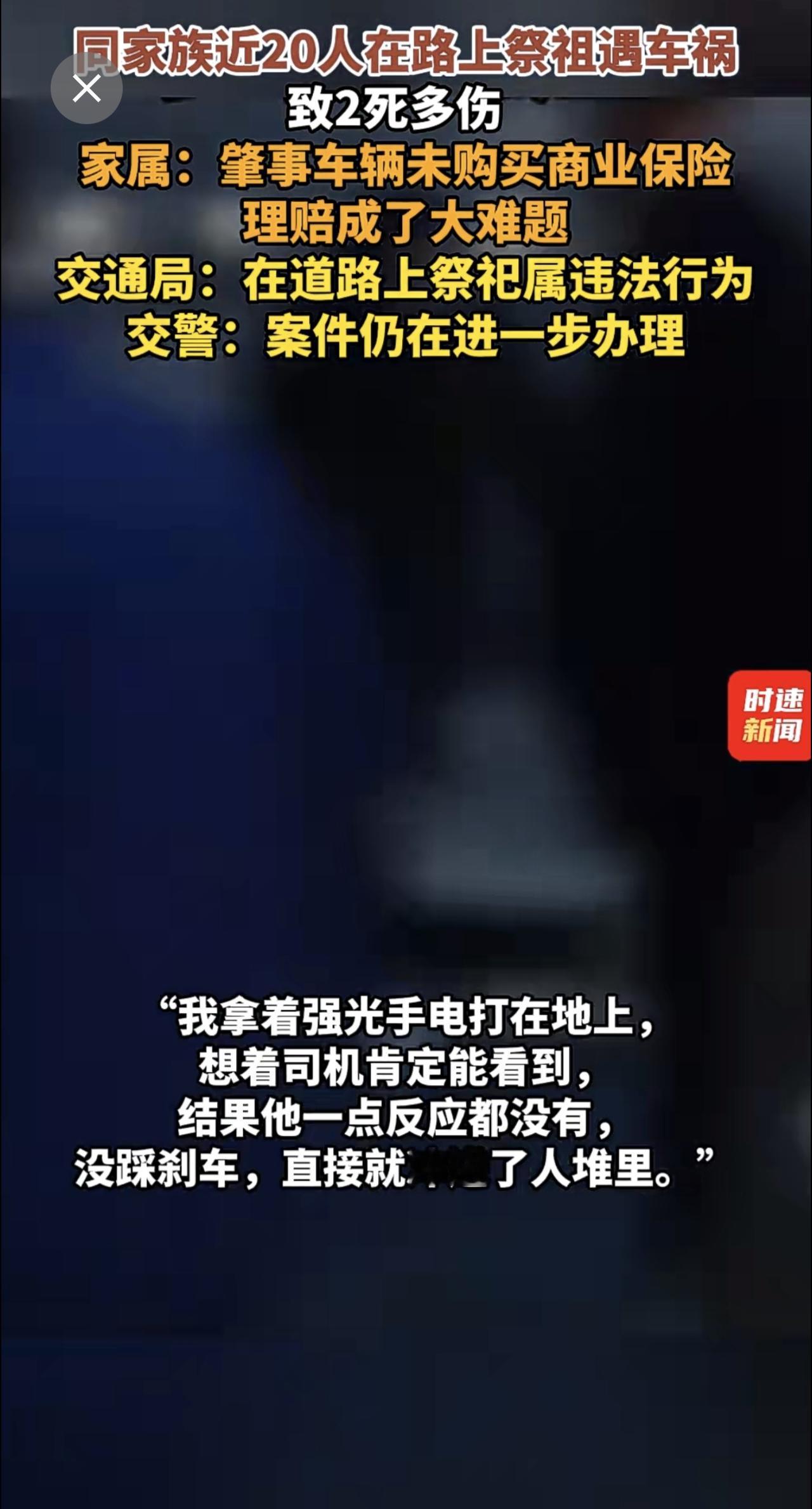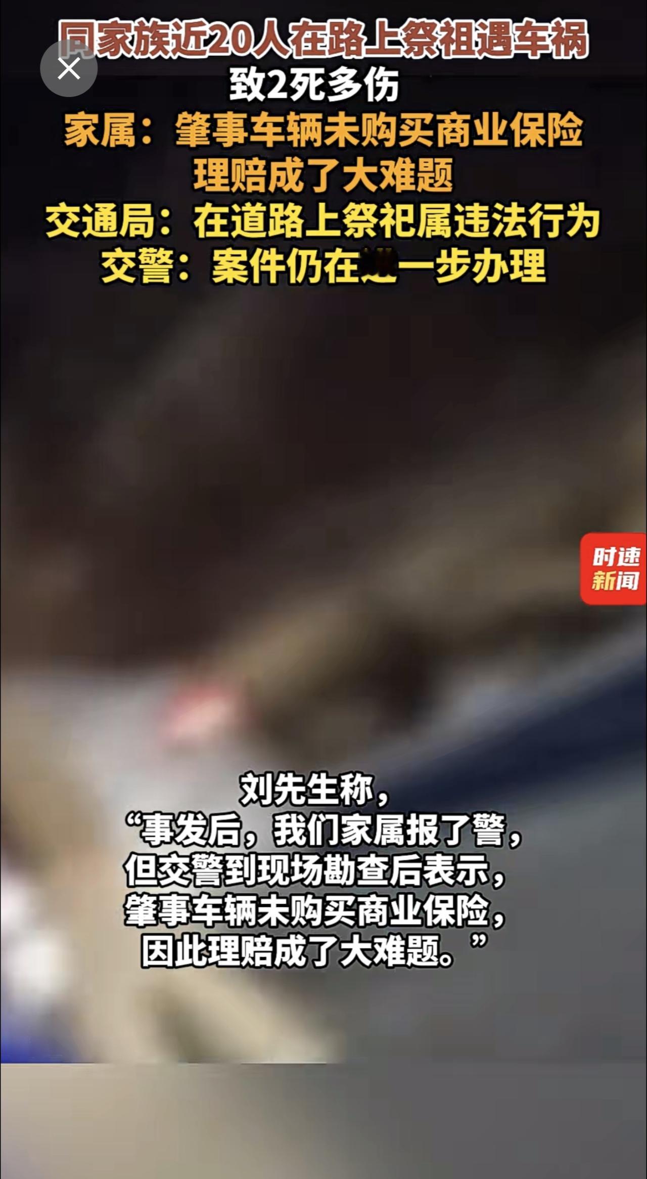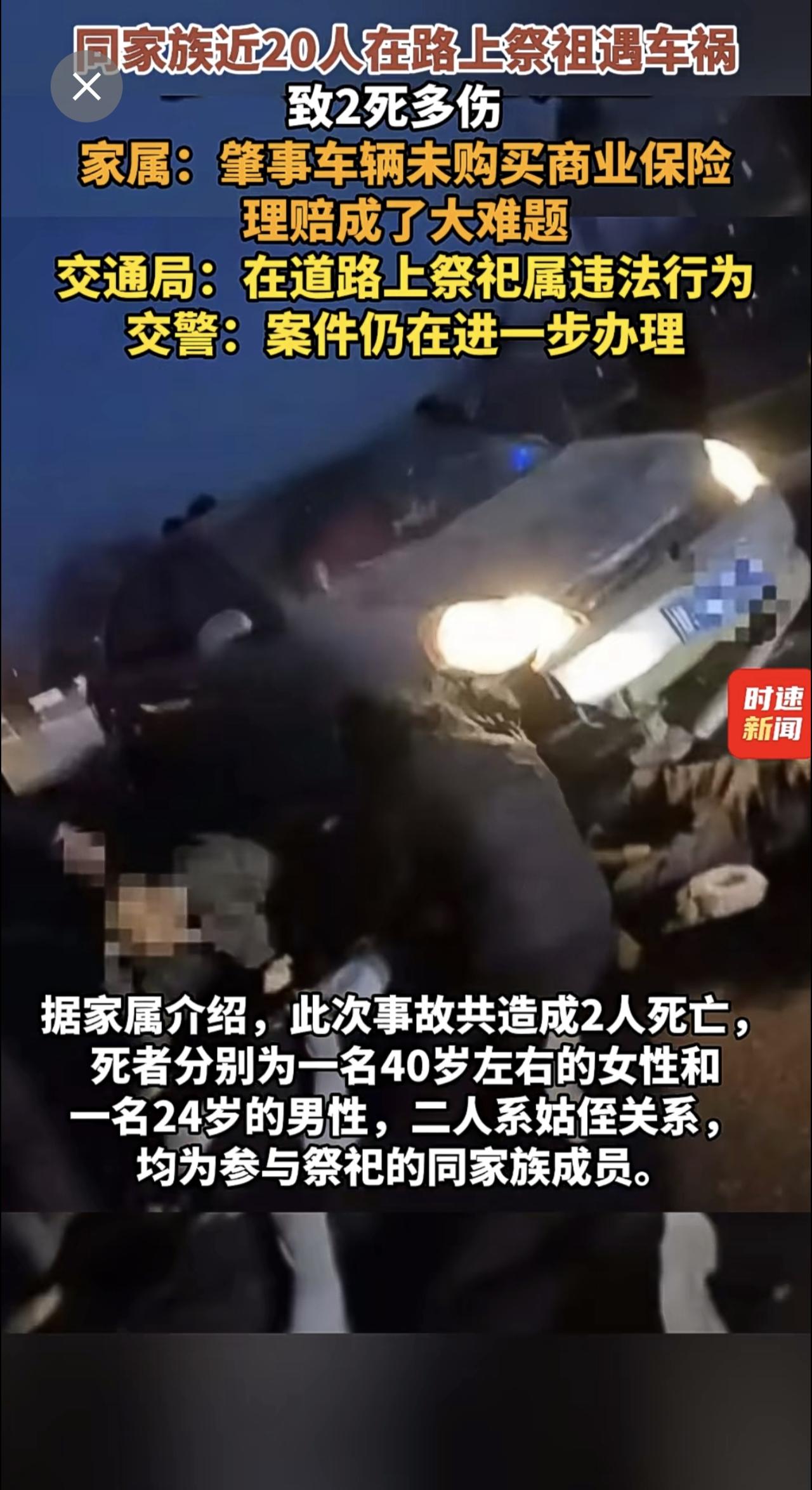 同家族近20人在路上祭祖遇车祸致2死多伤 ,家属:肇事车辆未购买商业保险,理赔成了大难题,交通局:在道路上祭祀属违法行为,交警:案件仍在进一步办理