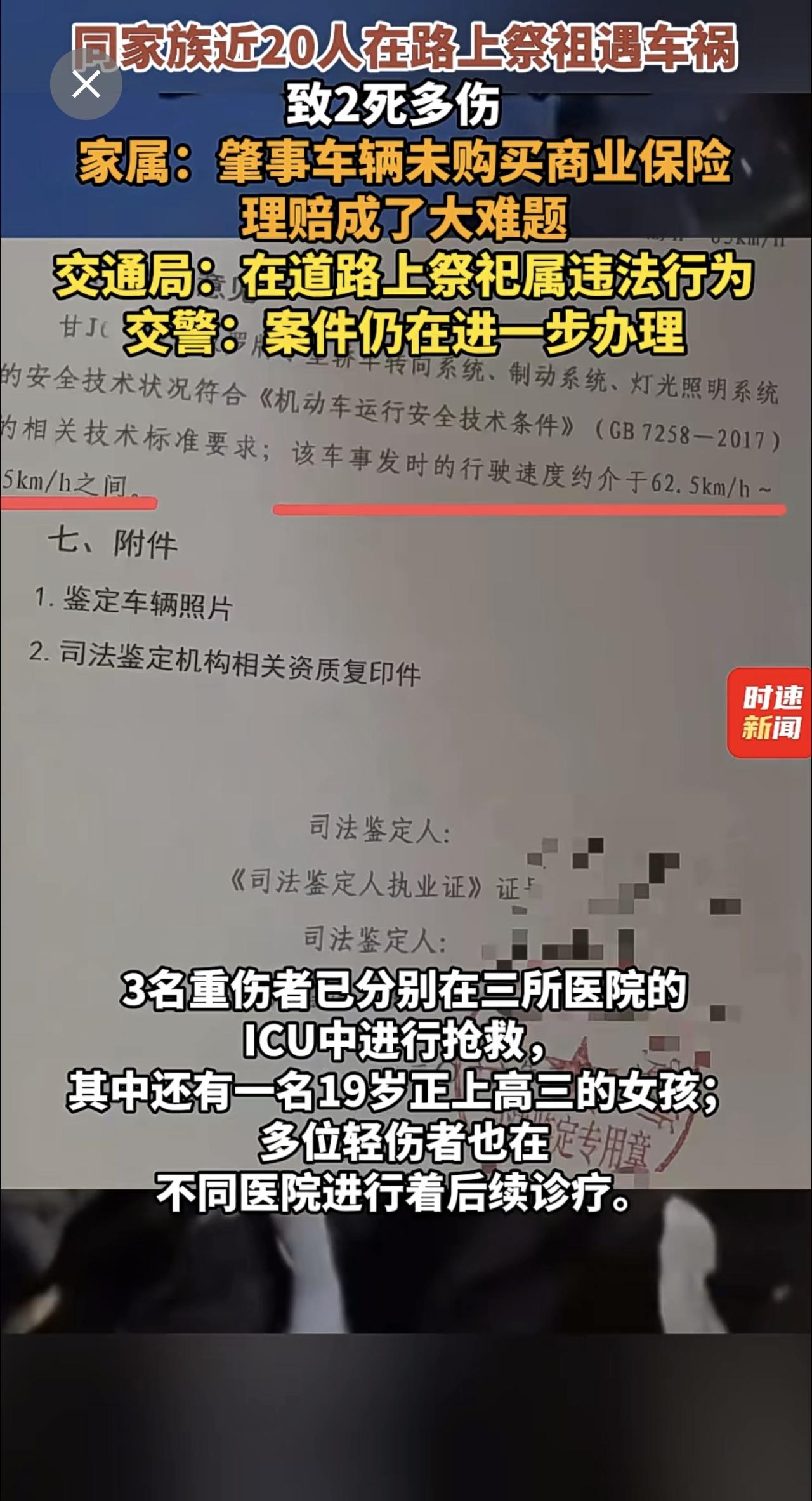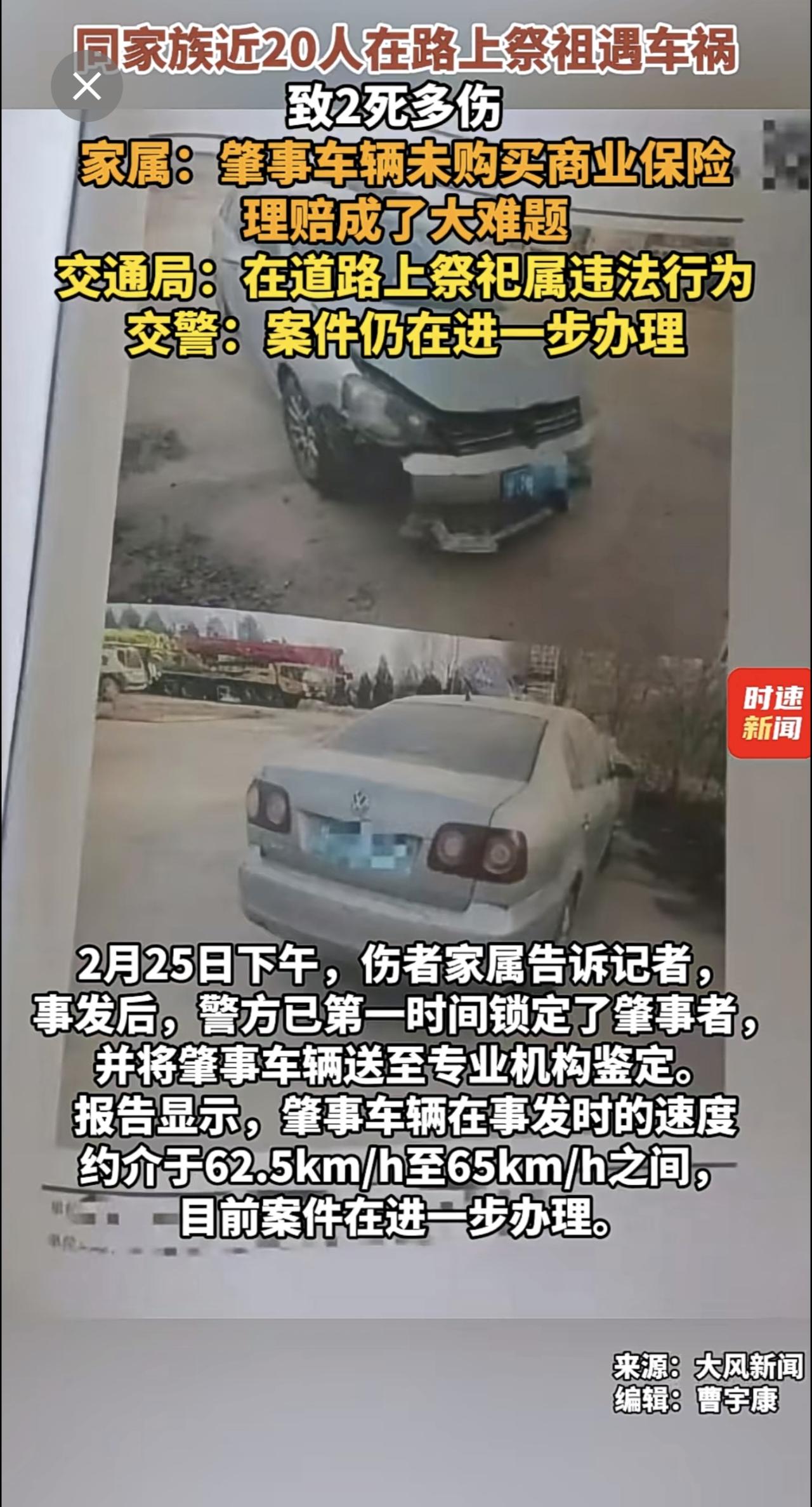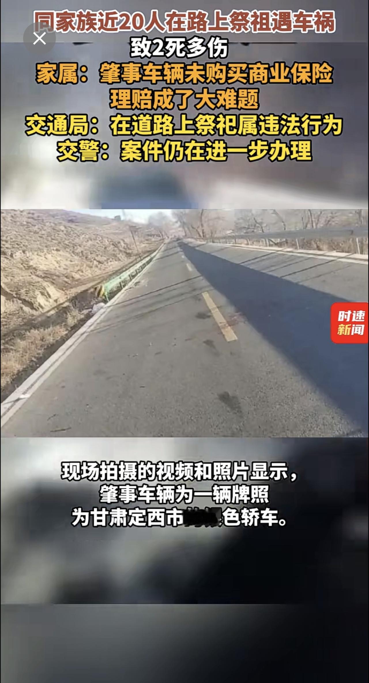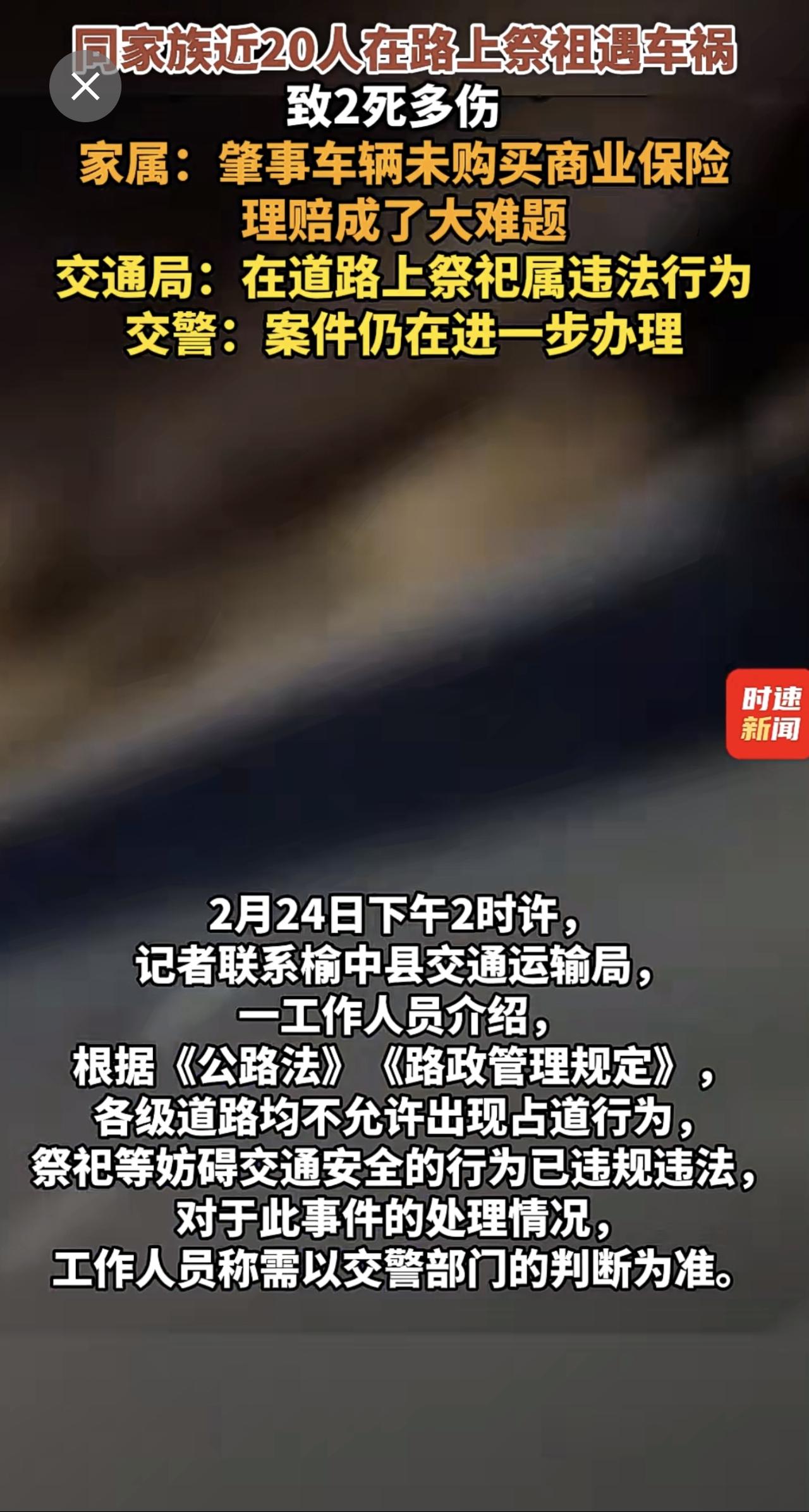 同家族近20人在路上祭祖遇车祸致2死多伤 ,家属:肇事车辆未购买商业保险,理赔成了大难题,交通局:在道路上祭祀属违法行为,交警:案件仍在进一步办理