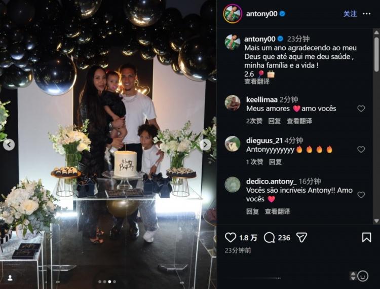安东尼在社媒写道:又一年过去了,感谢上帝赐予我健康、家庭和生命!26