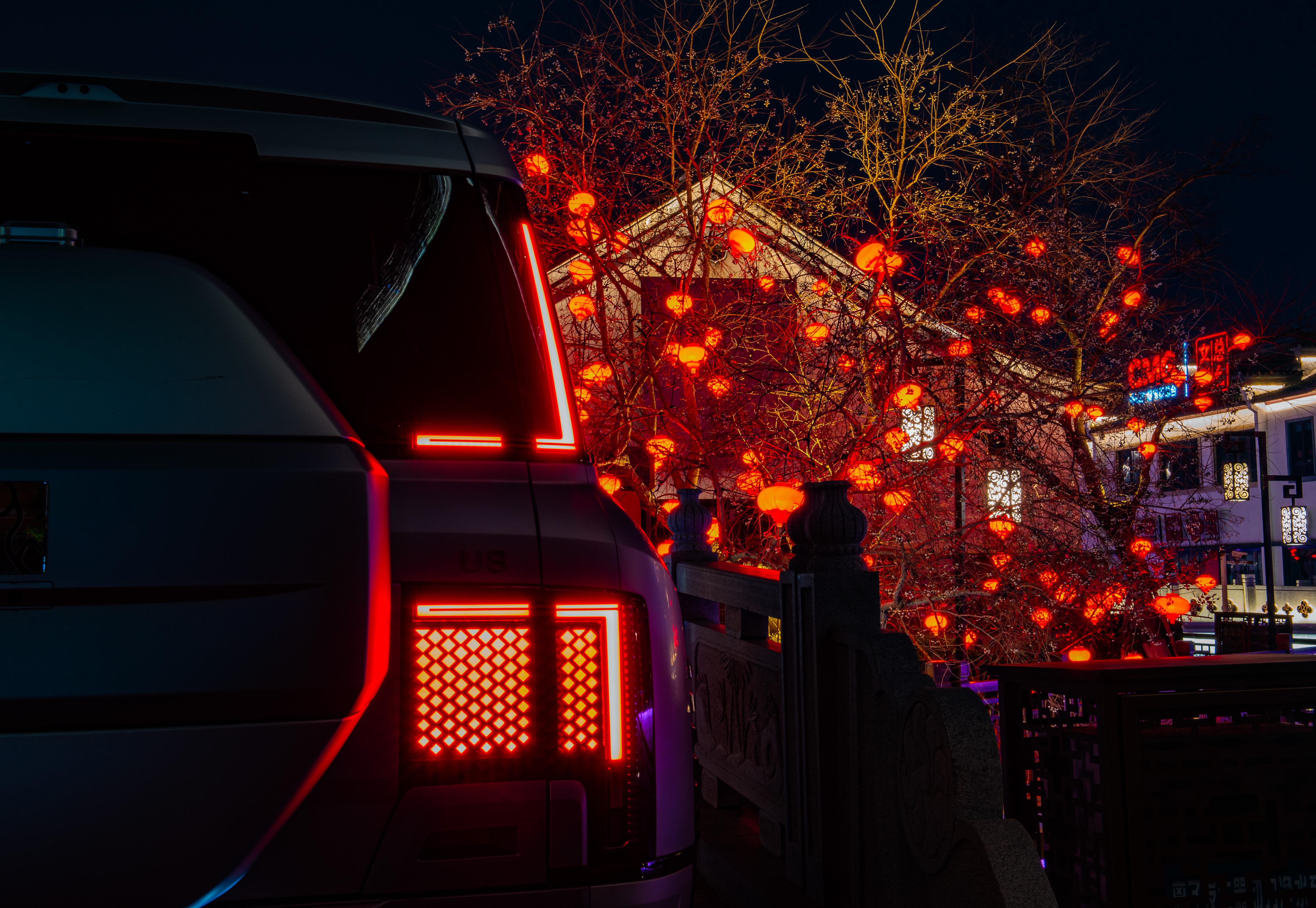 梅里夜,U8行。红灯笼是时光的注脚,车轮是向前的答案。仰望比亚迪