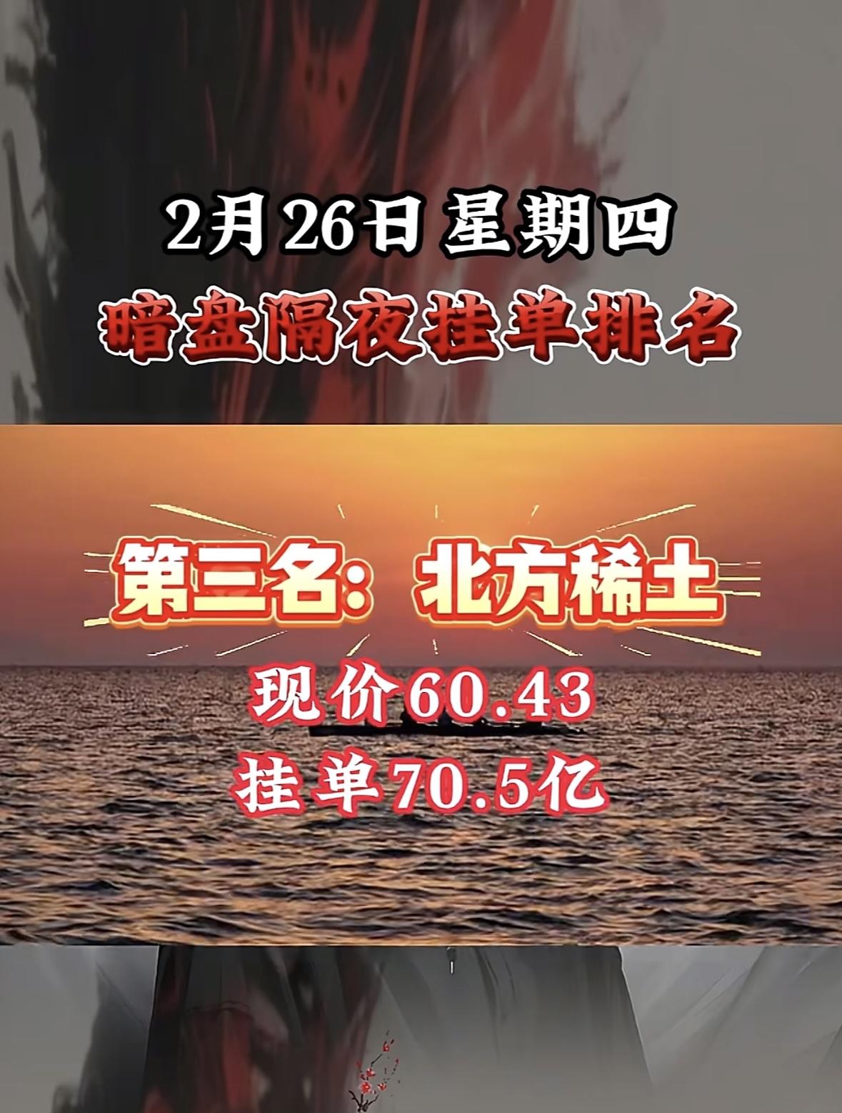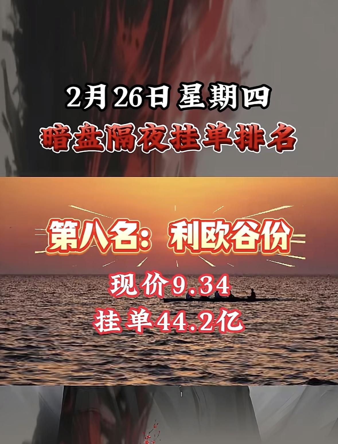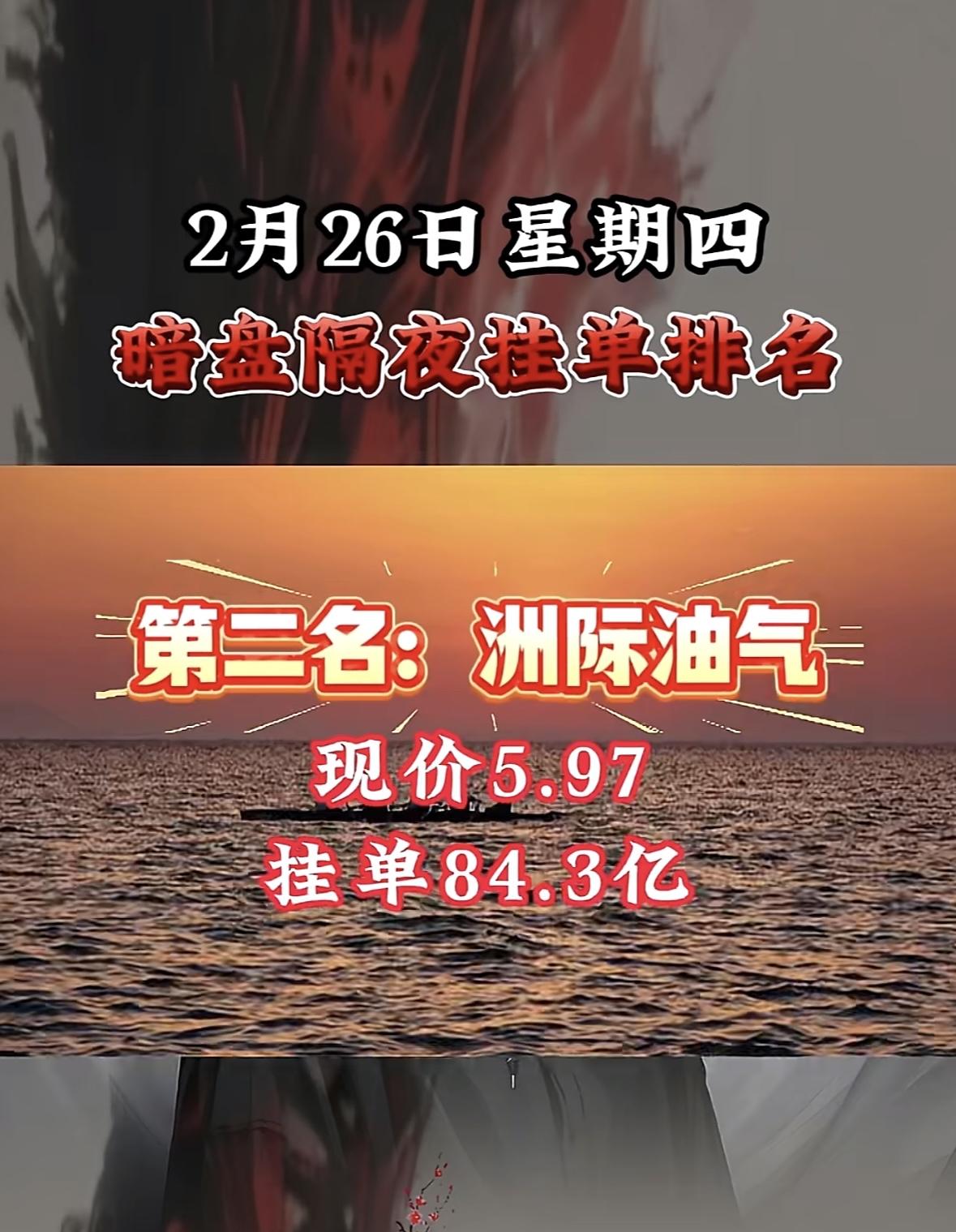 2月26日,暗盘隔夜挂单排行第三:洲际油气,现价5.97,挂单84.3亿! 禾利欧股暗盘挂单量惊人,现价附近资金博弈激烈,市场关注度飙升。