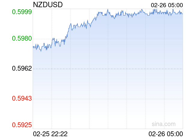 新浪外汇消息2026年02月26日,截至05时00分,外汇市场上新西兰元兑美元汇率突破1新西兰元兑换0.5996美元。涨幅为0.5703%