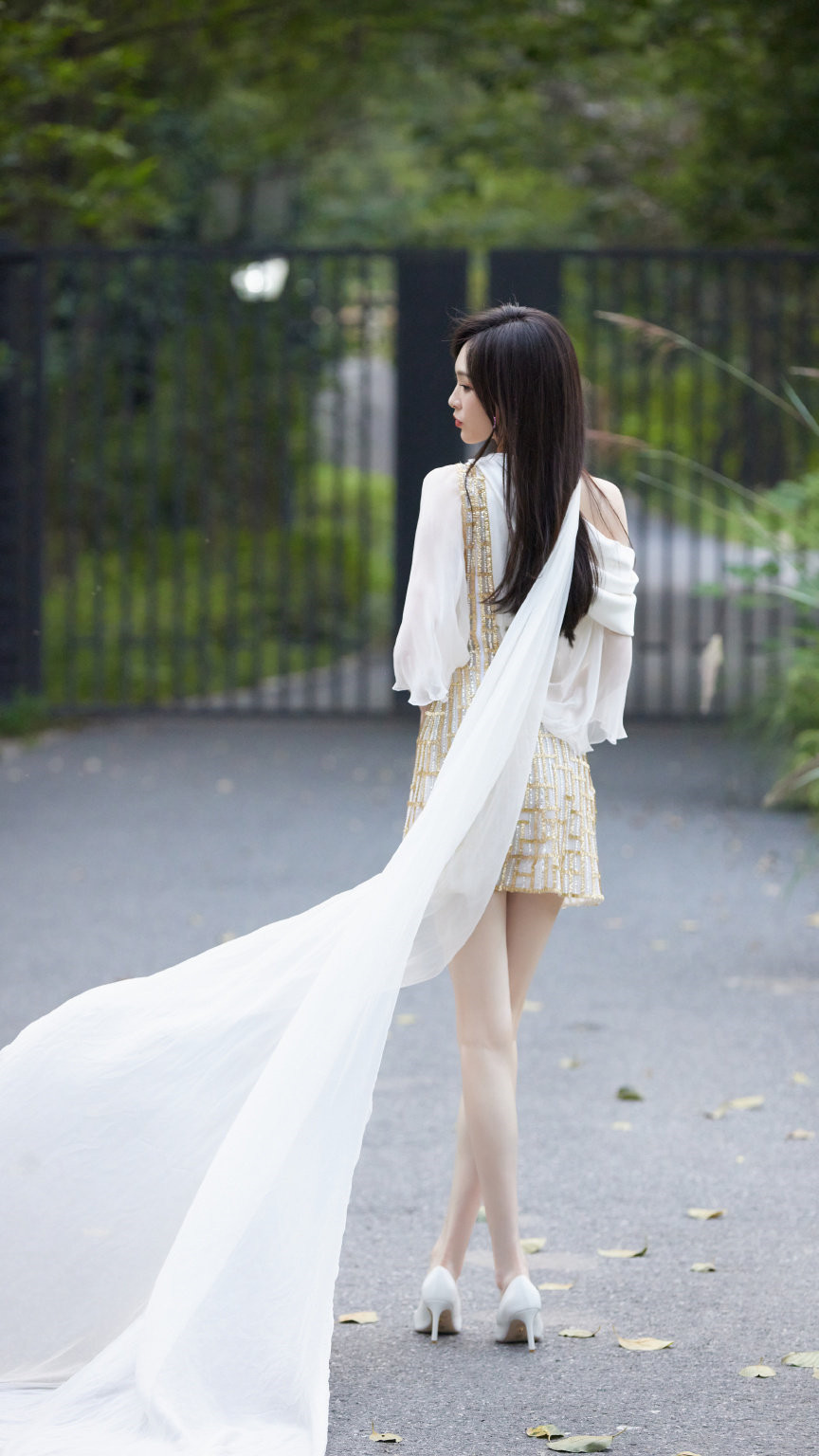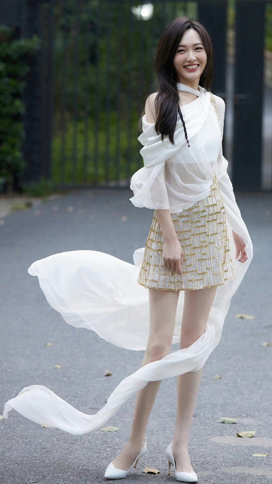 唐嫣浪漫穿搭:丝袜大长腿,经典永不过时。唐嫣