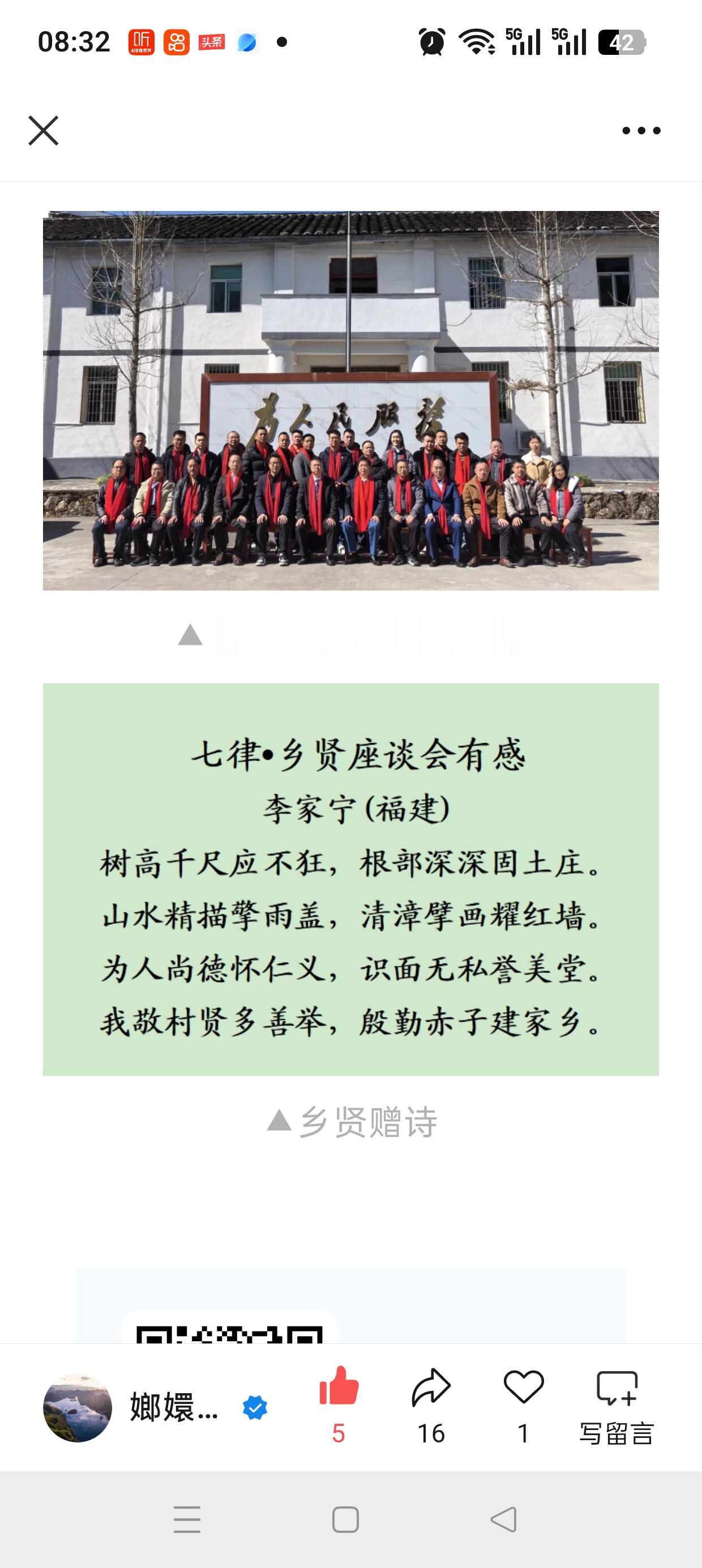 满江红•2026年政和春节(外六首) 李家宁(中国) 焕彩熊城,惊巨变、新春正烈。长街阔、平衢通韵,画楼连阙。栈道凌波延翠带,园亭缀玉凝香雪。古城新、胜事忆当年,碑铭碣。 佳茗润,春意发;良工就,文心越。看广场霓炫,华灯明灭。十里长街凝夜色,千门灯火摇明月。醉今宵、盛世展宏图,情难歇。2026、2、17 青玉案•2026春节 李家宁(福建) 银花火树星如雨,更狮舞、催箫鼓。马跃丙申春暗度,千门结彩,万家守岁,笑语盈朱户。屏前饺子香成雾,指上红包点轻露。欲问明朝新岁许:一囊晴色,两襟云路,万巷花千树。 2026、2、17 水调歌头•马年春节 李家宁(中国) 雪霁启新序,梅萼报春还。 神州欢跃同庆,灯火暖尘寰。 遥念故园亲友,笑聚围炉叙旧,杯酒话平安。 竹影摇清韵,喜气满庭栏。 辞旧岁,扬征旆,跨征鞍。 马蹄踏破寒晓,壮志逐云端。 愿得风调雨顺,更盼民安国泰,盛世续新篇。 纵目山河秀,岁岁乐长安。 2026、2、17 水调歌头•2026杨源乡贤恳谈会暨全域旅游招商推介会 李家宁(中国) 龙鸟亿年叫,唤醒洞宫春。 恳谈今日盛会,擎盏共论文。 座有乡音亲切,更有良筹频献,妙策胜金银。 路畅物流转,信息汇如云。 戏台上,廊桥畔,气氤氲。 这方胜境邀客,待约有心君。 欲借天光云影,来筑琼楼列苑,研学引童真。 携手续宏卷,圆梦在杨村。 2026、2、25 水调歌头•楼下板凳龙 李家宁(中国) 灯火连千户,板凳接长龙。 夜寒难锁春意,腾跃古村中。 乍见金鳞闪烁,忽作山移云涌,呼啸卷香风。 百丈星河落,一脉骨筋通。 穿深巷,绕老树,势如虹。 盘旋昂首,直向天宇问苍穹。 莫道薪传火继,本是心同心跳,岁岁此相逢。 但愿人如岳,昂首立高峰。 2026、2、26 水调歌头•诗人俞心樵在政和 李家宁(中国) 东去是闽水,北望即杭城。 不知游子归路,多少雨和灯? 此去江湖百转,笔底风雷千卷,一啸浪涛平。 黑白布衣色,肝胆玉壶冰。 星斗换,城郭改,水更清。 旧时石圳,今日花气满中庭。 不必抒情最后,但看墓铭浅唱,天地立人形。 君自故乡老,我是故乡生。 2026、2、25 水调歌头•除夕亲人聚熊城 李家宁(中国) 瑞豪开盛宴,笑语满熊城。一堂南北欢聚,杯盏映灯明。忆昔庭阶兰桂,话尽流年甘苦,暖意透胸膺。手足情深厚,骨肉意坚贞。 抚过往,期嘉岁,马蹄轻。鹏程万里,携手同踏锦前程。且借今宵酒力,共绘来朝风景,家运与时亨。此乐长相守, 岁岁福潮生。 2026、2、17