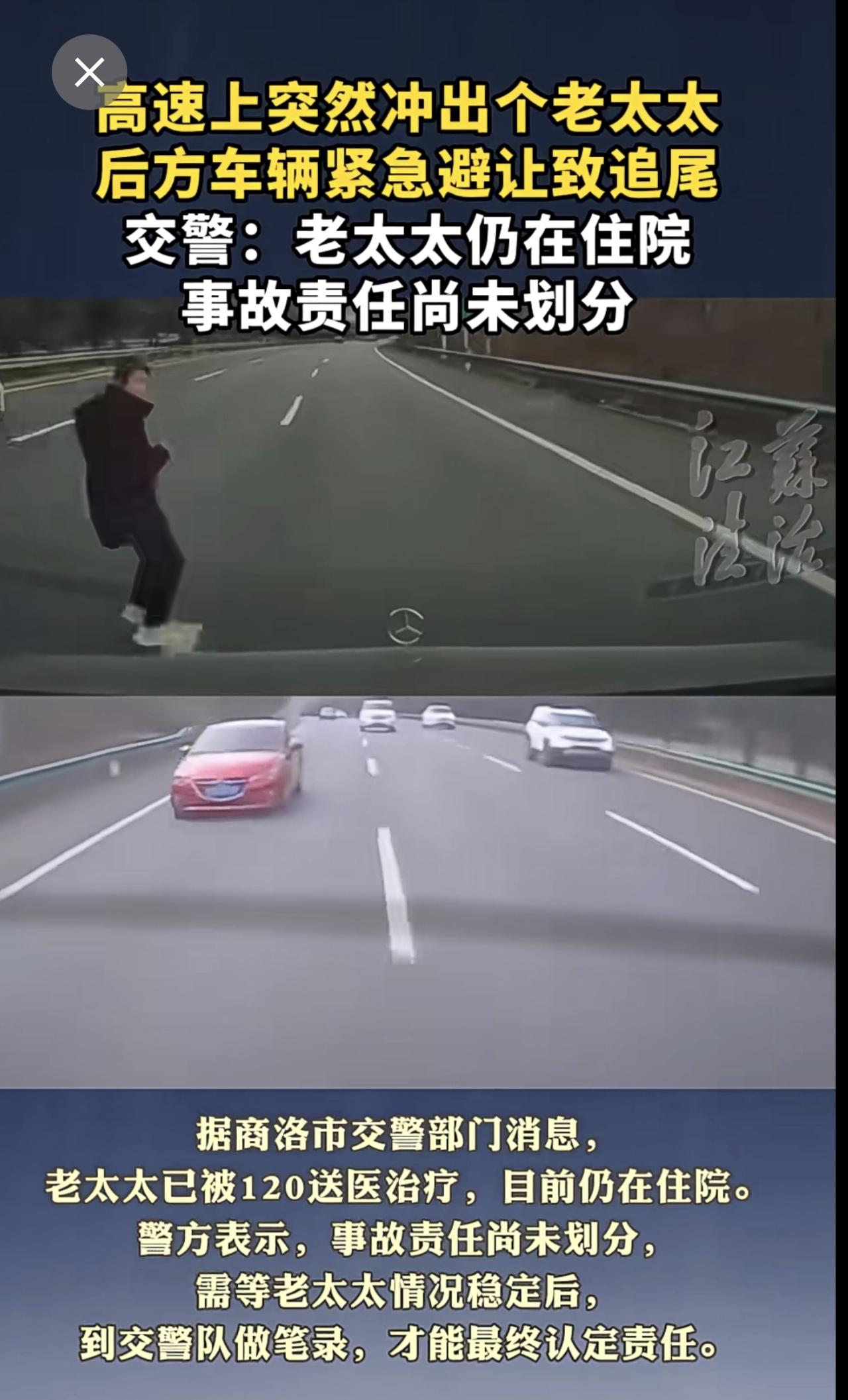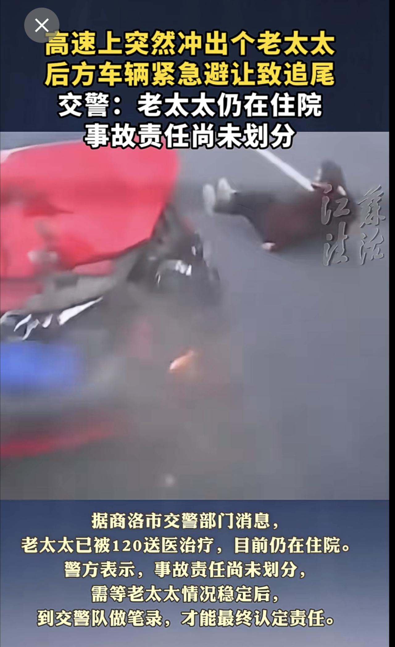 高速上突然冲出个老太太!后方车辆紧急避让致追尾;交警:老太太仍在住院,事故责任尚未划分