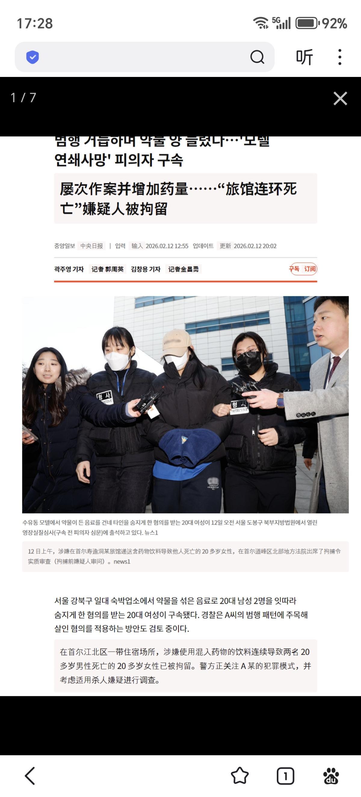 韩国首尔强北区发生一起震惊社会的“汽车旅馆连环药物杀人案”。22岁嫌疑人金某涉嫌从去年12月起,通过在饮料中混入苯二氮卓类安眠药(处方精神类药物),诱使多名20多岁男性饮用,导致2人死亡、1人重伤昏迷。 警方确认她曾多次向ChatGPT询问“安眠药与酒精混合是否致命”“过量会死吗”等致命性问题,作为预谋证据,已以杀人罪等罪名于2月19日移送检方。目前调查显示可能存在更多受害者,警方正扩大范围。 案件曝光后,金某的Instagram账号(原粉丝约200-240人)被网友挖掘并传播,在该账号的评论区中,出现了大量“逆天”言论,诸如“漂亮即无罪”“应该减刑”等,粉丝暴涨至1.1万余人,引发韩国社会对“外貌崇拜”和“加害者美化”的强烈批评。 此外,金某的社交媒体账号在作案期间依然保持着惊人的活跃度。直至2月10日下午被警方紧急逮捕的前30分钟,她仍在发布限时动态并打上“互粉”“欢迎关注”标签。警方怀疑,她极有可能正在物色下一个作案目标。