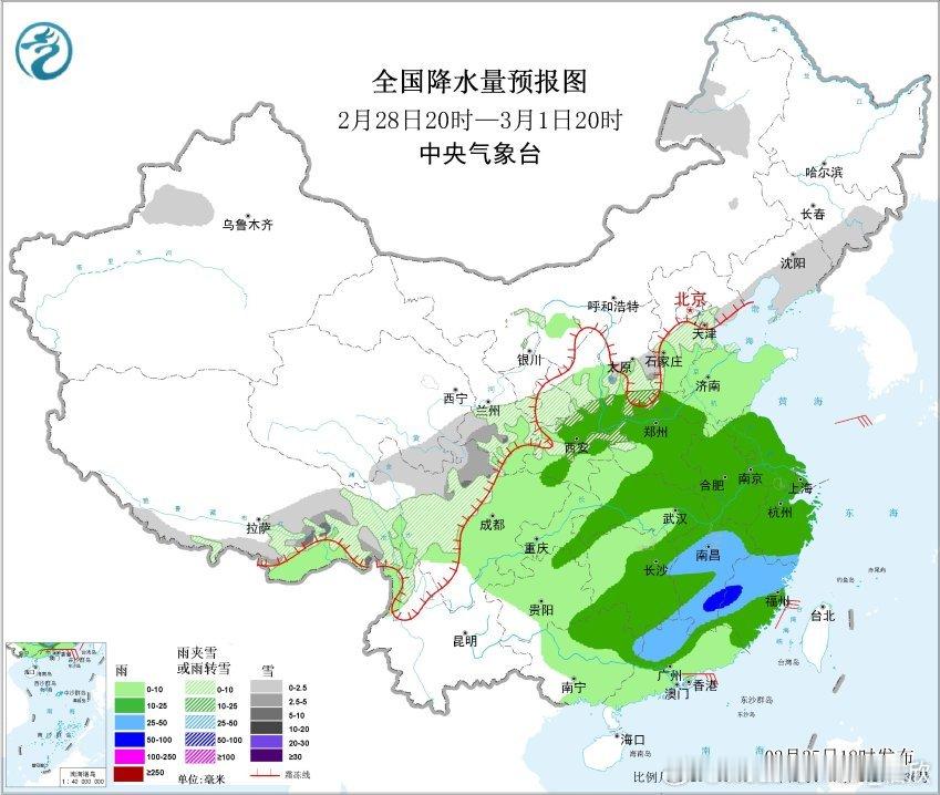 27日暖湿气流减弱,低空冷空气南下,南方的降雨总体向南收缩,强度减弱。不过2月底-3月初,暖湿气流还会再次加强北上。届时华南的对流能量会更多,并且低空还有南风急流。可能在南方出现两个明显的降雨区,一个是南风急流北侧的拐弯减速区(切变线降水),一个是南风急流上的暖区对流。