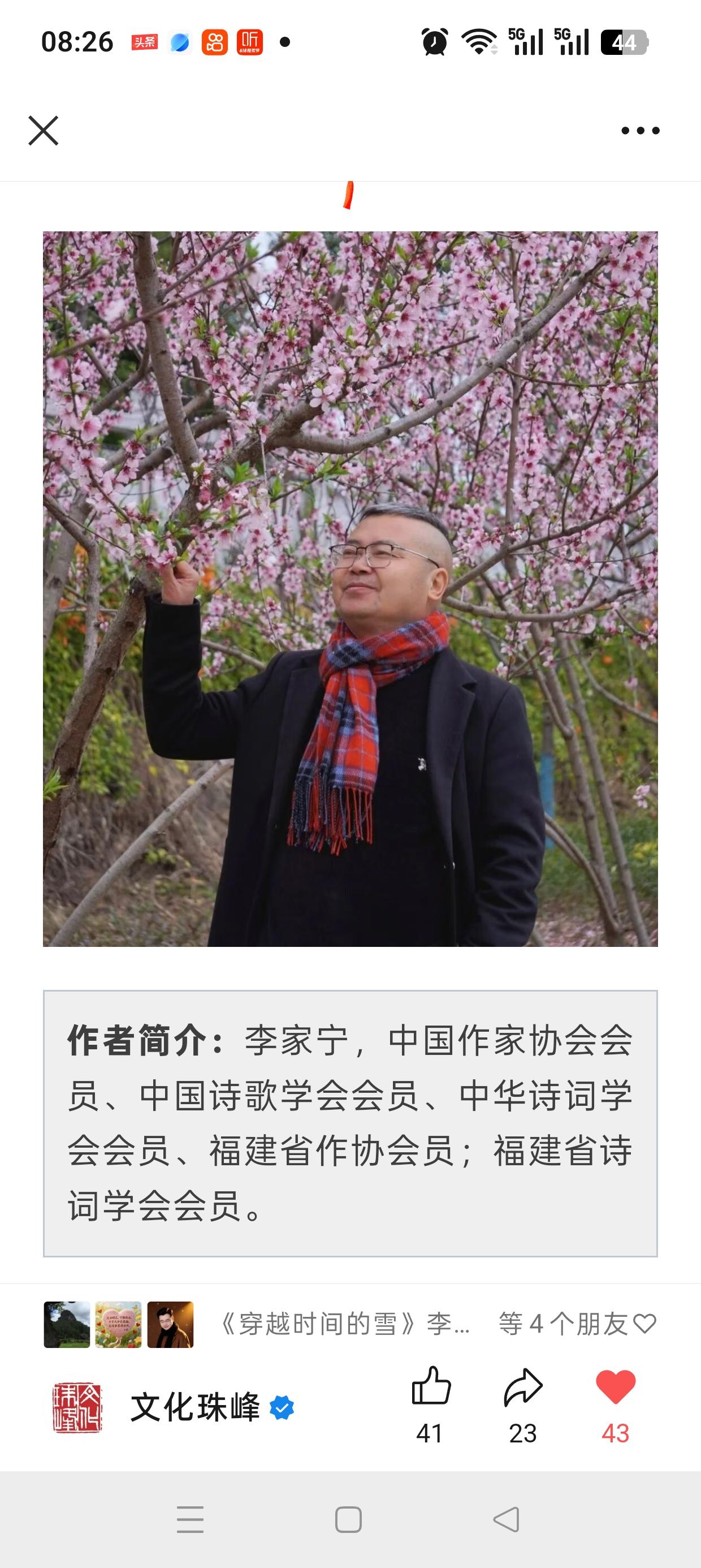 七律•2024杨源乡贤春节座谈会(外五首) 李家宁(福建) 树高千尺应不狂, 根部深深固土庄。 山水精描擎雨盖, 清漳擘画耀红墙。 为人尚德怀仁义, 识面无私誉美堂。 我敬村贤多善举, 殷勤赤子建家乡。 2024、2、12 水调歌头•2024杨源乡贤座谈会 李家宁(福建) 玉兔乘风去,今又遇蛟龙。老天频降鸿运,诗意跃苍穹。祈愿民安国泰,振兴杨源经济,伟业更昌隆。寒轻起祥瑞,成就至巅峰。 琼觞举,友朋聚,气荡胸。风和故里,再蘸妙笔写华雍。献策家乡善举,创意时如泉出,流去势冲冲。寄语乡贤者,奇志壮如松。 2024、2、12 满江红•2025杨源乡贤恳谈会 李家宁(中国) 春节杨源,群贤聚、乡音未歇。 凭栏望、镇称龙鸟,嫏嬛清绝。 一载耕耘仓廪足,千秋谋划肝肠热。 莫闲谈、且把振兴图,从头越。 商会谊,坚似铁;教泽远,情难灭。 叹同心共筑,几多心血。 文旅融通天地阔,资源转化风云烈。 待明朝、福地遍笙歌,酬飞捷。 2025春节正月初三 水调歌头•2025春节杨源乡同心乡村恳谈会抒怀 李家宁(福建) 乙巳启新岁,暖煦照杨源。乡贤纷至同聚,诚议意拳拳。漫话田畴农事,细论梓乡宏略,众志绘新篇。烟火漫街巷,欢语彻云天。 思来路,瞻远景,志如磐。兴村之路,携手奋进越重峦。惠政甘霖频洒,民意畅言皆纳,众力破难关。唯愿家园美,岁岁乐丰年。 2025、2、1 水调歌头•2026杨源乡贤恳谈会暨全域旅游招商推介会 李家宁(中国) 龙鸟亿年叫,唤醒洞宫春。 恳谈今日盛会,擎盏共论文。 座有乡音亲切,更有良筹频献,妙策胜金银。 路畅物流转,信息汇如云。 戏台上,廊桥畔,气氤氲。 这方胜境邀客,待约有心君。 欲借天光云影,来筑琼楼列苑,研学引童真。 携手续宏卷,圆梦在杨村。 2026、2、25 渔家傲•奋进中的杨源(招商推介会有感) 李家宁(中国) 龙鸟故园春信早,乡贤毕至商筹好。福地洞天藏古奥,凭谁道?三年宏图初呈兆。 富庶茶山云间绕,清溪葡萄珍珠跳。林下生金人未老,东风浩,归来共把家园造。 2026、2、25