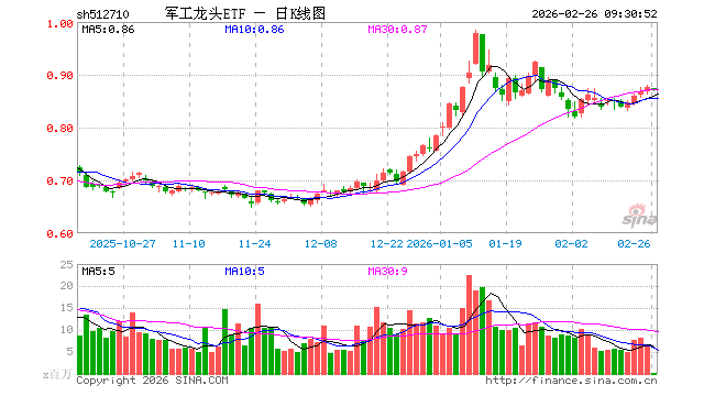 军工龙头ETF(512710)业绩比较基准为中证军工龙头指数收益率,管理人为富国基金管理有限公司,基金经理为牛志冬、王乐乐,成立(2019-07-23)以来回报为75.21%,近一个月回报为-4.77%。
