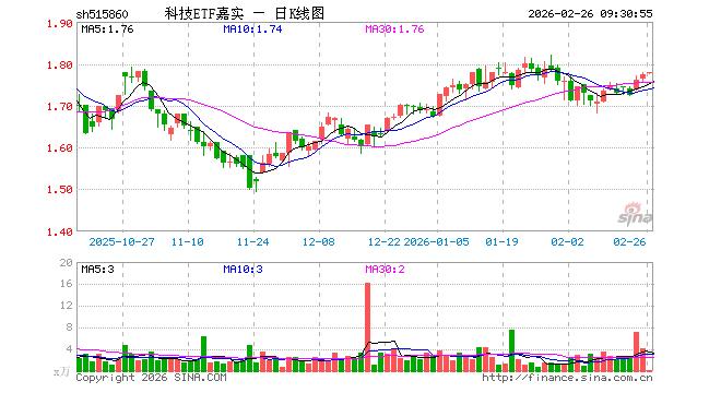 科技ETF嘉实(515860)业绩比较基准为中证新兴科技100策略指数收益率,管理人为嘉实基金管理有限公司,基金经理为尚可,成立(2019-09-26)以来回报为77.75%,近一个月回报为-0.80%。