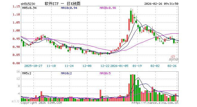 软件ETF(515230)业绩比较基准为中证全指软件指数收益率,管理人为国泰基金管理有限公司,基金经理为苗梦羽,成立(2021-02-03)以来回报为-7.45%,近一个月回报为-9.34%。