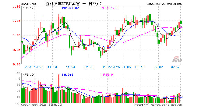 2月26日,新能源车ETF汇添富(516390)开盘涨0.48%,报1.050元。新能源车ETF汇添富(516390)重仓股方面,比亚迪开盘跌0.05%,宁德时代跌1.69%,汇川技术跌0.35%,三花智控跌0.67%,华友钴业涨3.39%,亿纬锂能涨0.84%,赣锋锂业涨4.44%,天赐材料涨1.55%,长安汽车涨0.00%,天齐锂业涨5.91%。