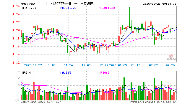 2月26日,上证180ETF兴业(530680)开盘涨0.17%,报1.212元。上证180ETF兴业(530680)重仓股方面,贵州茅台开盘跌0.34%,紫金矿业涨0.66%,中国平安涨0.69%,恒瑞医药涨0.00%,寒武纪涨1.15%,药明康德跌0.32%,招商银行涨0.05%,长江电力涨0.04%,工业富联涨0.02%,中芯国际涨0.00%。