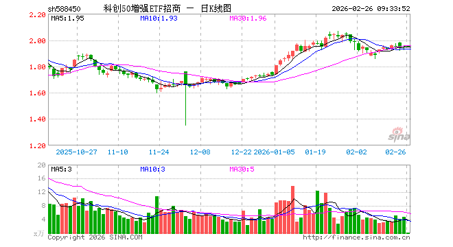 2月26日,科创50增强ETF招商(588450)开盘涨0.26%,报1.955元。科创50增强ETF招商(588450)重仓股方面,中芯国际开盘涨0.00%,海光信息涨2.00%,中微公司跌0.43%,澜起科技涨0.10%,寒武纪涨1.15%,金山办公涨0.00%,联影医疗涨3.26%,晶合集成涨0.78%,中控技术跌0.46%,佰维存储涨0.14%。