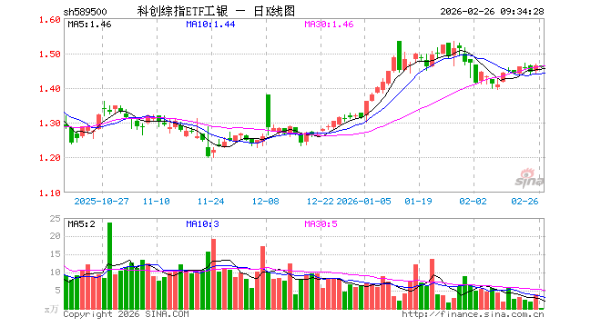 科创综指ETF工银(589500)业绩比较基准为上证科创板综合价格指数收益率,管理人为工银瑞信基金管理有限公司,基金经理为史宝珖,成立(2025-02-24)以来回报为46.40%,近一个月回报为-3.95%。