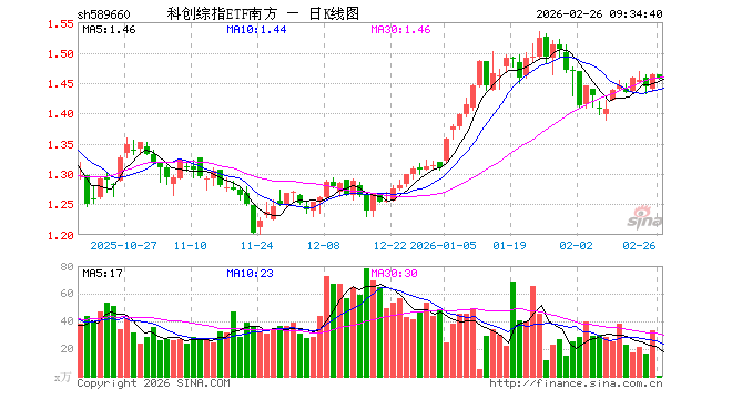 科创综指ETF南方(589660)业绩比较基准为上证科创板综合指数收益率,管理人为南方基金管理股份有限公司,基金经理为潘水洋、杨恺宁,成立(2025-02-26)以来回报为46.05%,近一个月回报为-3.99%。
