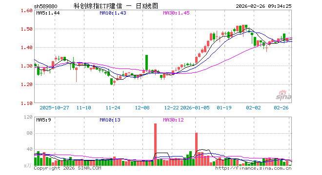 科创综指ETF建信(589880)业绩比较基准为上证科创板综合指数收益率,管理人为建信基金管理有限责任公司,基金经理为葛鲁禹,成立(2025-02-20)以来回报为44.75%,近一个月回报为-4.24%。