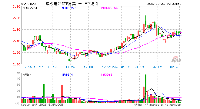 2月26日,集成电路ETF嘉实(562820)开盘涨1.34%,报2.562元。集成电路ETF嘉实(562820)重仓股方面,寒武纪开盘涨1.15%,中芯国际涨0.00%,海光信息涨2.00%,兆易创新涨1.50%,澜起科技涨0.10%,豪威集团涨0.22%,紫光国微涨0.74%,长电科技跌0.04%,芯原股份涨1.90%,通富微电涨0.06%。
