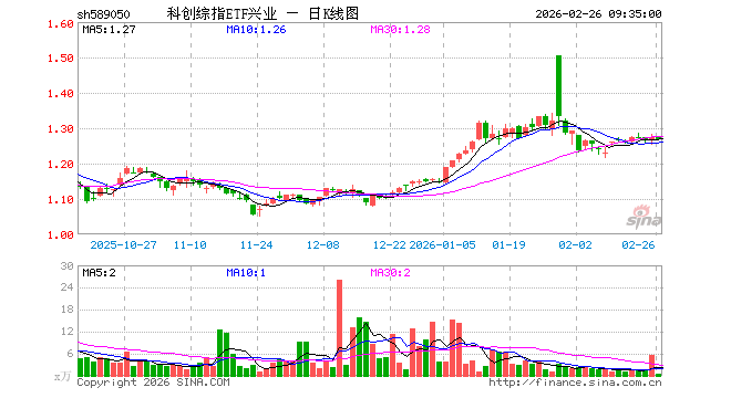 科创综指ETF兴业(589050)业绩比较基准为上证科创板综合价格指数收益率,管理人为兴业基金管理有限公司,基金经理为徐成城、张诗悦,成立(2025-07-30)以来回报为27.71%,近一个月回报为-4.18%。