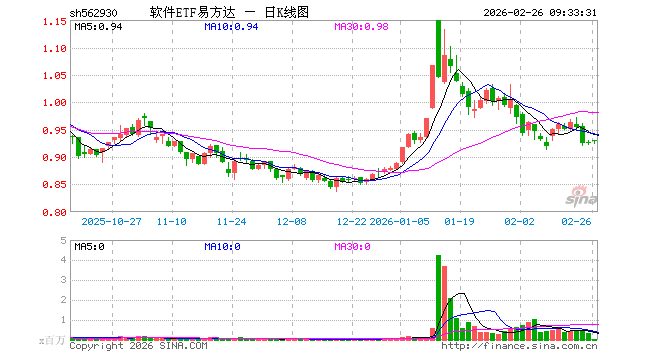 2月26日,软件ETF易方达(562930)开盘涨0.54%,报0.930元。软件ETF易方达(562930)重仓股方面,科大讯飞开盘涨0.02%,金山办公涨0.00%,同花顺跌0.45%,指南针涨0.12%,恒生电子涨0.50%,拓维信息涨0.06%,润和软件涨0.37%,三六零跌0.16%,软通动力涨0.21%。