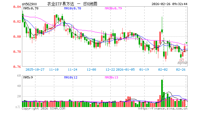 2月26日,农业ETF易方达(562900)开盘涨0.64%,报0.792元。农业ETF易方达(562900)重仓股方面,牧原股份开盘涨0.54%,温氏股份涨2.07%,海大集团跌0.09%,正邦科技涨0.31%,新希望涨0.35%,梅花生物涨0.00%,生物股份涨0.37%,大北农涨0.00%,隆平高科跌0.20%,北大荒跌0.13%。