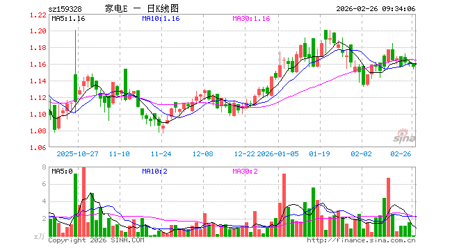 2月26日,家电ETF易方达(159328)开盘涨0.00%,报1.160元。家电ETF易方达(159328)重仓股方面,三花智控开盘跌0.67%,格力电器跌2.57%,美的集团涨0.56%,海尔智家跌0.19%,麦格米特涨2.00%,四川长虹涨0.30%,石头科技涨0.05%,海信视像涨0.09%,科沃斯涨0.04%,兆驰股份涨1.53%。