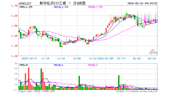 数字经济ETF工银(561220)业绩比较基准为中证诚通国企数字经济指数收益率,管理人为工银瑞信基金管理有限公司,基金经理为史宝珖,成立(2025-05-21)以来回报为56.14%,近一个月回报为-3.00%。
