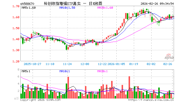 科创综指增强ETF嘉实(588670)业绩比较基准为上证科创板综合指数收益率,管理人为嘉实基金管理有限公司,基金经理为龙昌伦、尚可,成立(2025-06-05)以来回报为60.57%,近一个月回报为-3.76%。