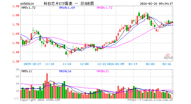 2月26日,科创芯片ETF国泰(589100)开盘涨0.29%,报1.730元。科创芯片ETF国泰(589100)重仓股方面,中芯国际开盘涨0.00%,海光信息涨2.00%,寒武纪涨1.15%,澜起科技涨0.10%,中微公司跌0.43%,拓荆科技涨0.16%,芯原股份涨1.90%,华虹公司涨0.91%,沪硅产业涨0.91%,东芯股份涨1.53%。