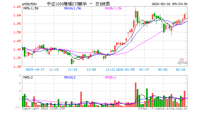 中证1000增强ETF鹏华(560590)业绩比较基准为中证1000指数收益率,管理人为鹏华基金管理有限公司,基金经理为寇斌权,成立(2023-09-01)以来回报为59.89%,近一个月回报为-0.22%。