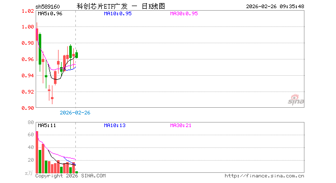 2月26日,科创芯片ETF广发(589160)开盘涨0.21%,报0.968元。科创芯片ETF广发(589160)重仓股方面,海光信息开盘涨2.00%,中芯国际涨0.00%,澜起科技涨0.10%,寒武纪涨1.15%,中微公司跌0.43%,芯原股份涨1.90%,拓荆科技涨0.16%,佰维存储涨0.14%,华虹公司涨0.91%,华海清科涨0.52%。