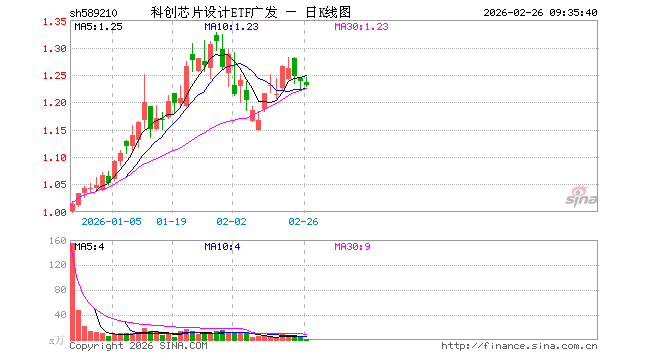 2月26日,科创芯片设计ETF广发(589210)开盘跌0.08%,报1.236元。科创芯片设计ETF广发(589210)重仓股方面,澜起科技开盘涨0.10%,寒武纪涨1.15%,海光信息涨2.00%,芯原股份涨1.90%,佰维存储涨0.14%,东芯股份涨1.53%,睿创微纳跌0.17%,龙芯中科涨0.00%,晶晨股份涨0.05%,恒玄科技跌2.90%。