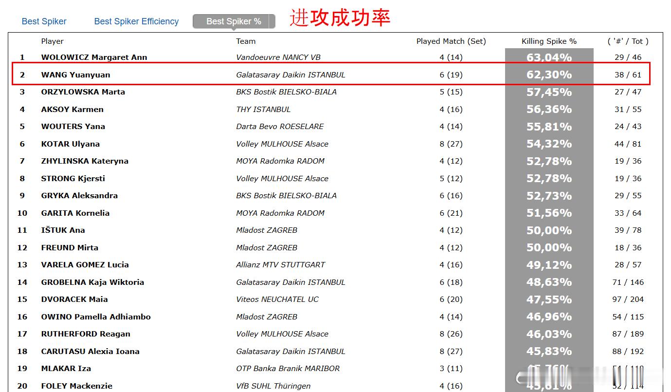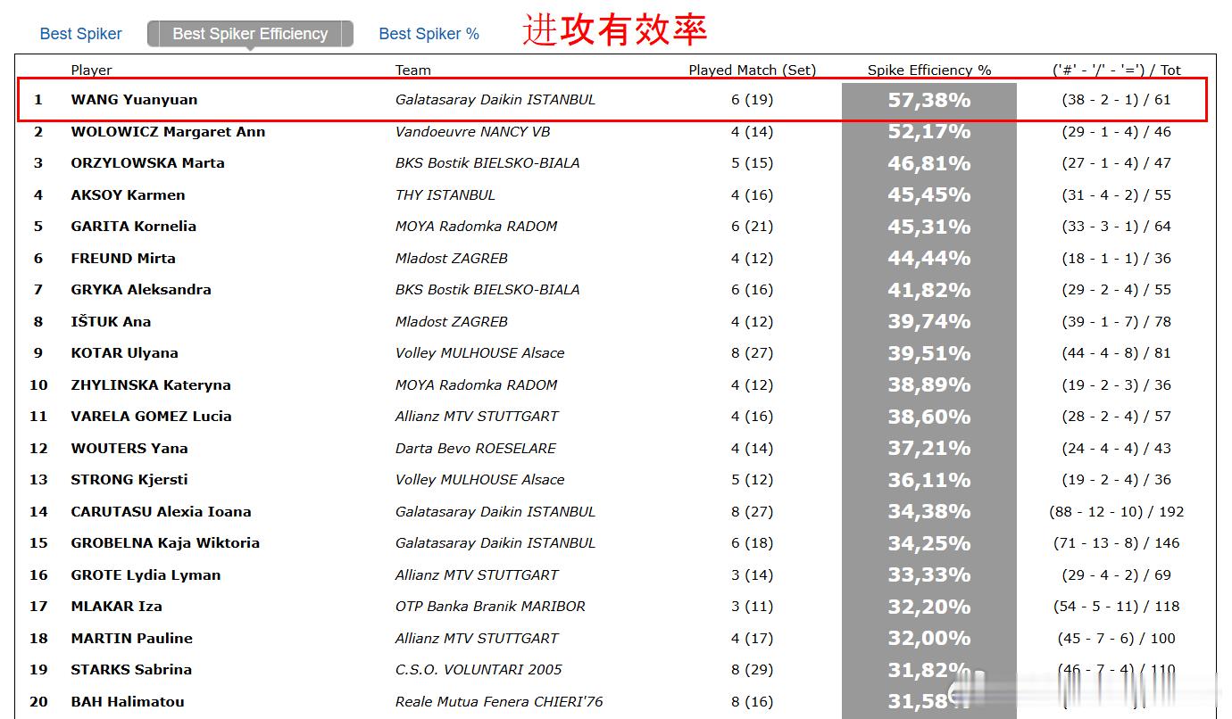 王媛媛留洋第一季 🟡🔴 女排欧联杯战至1/4决赛结束,国手王媛媛在进攻有效率