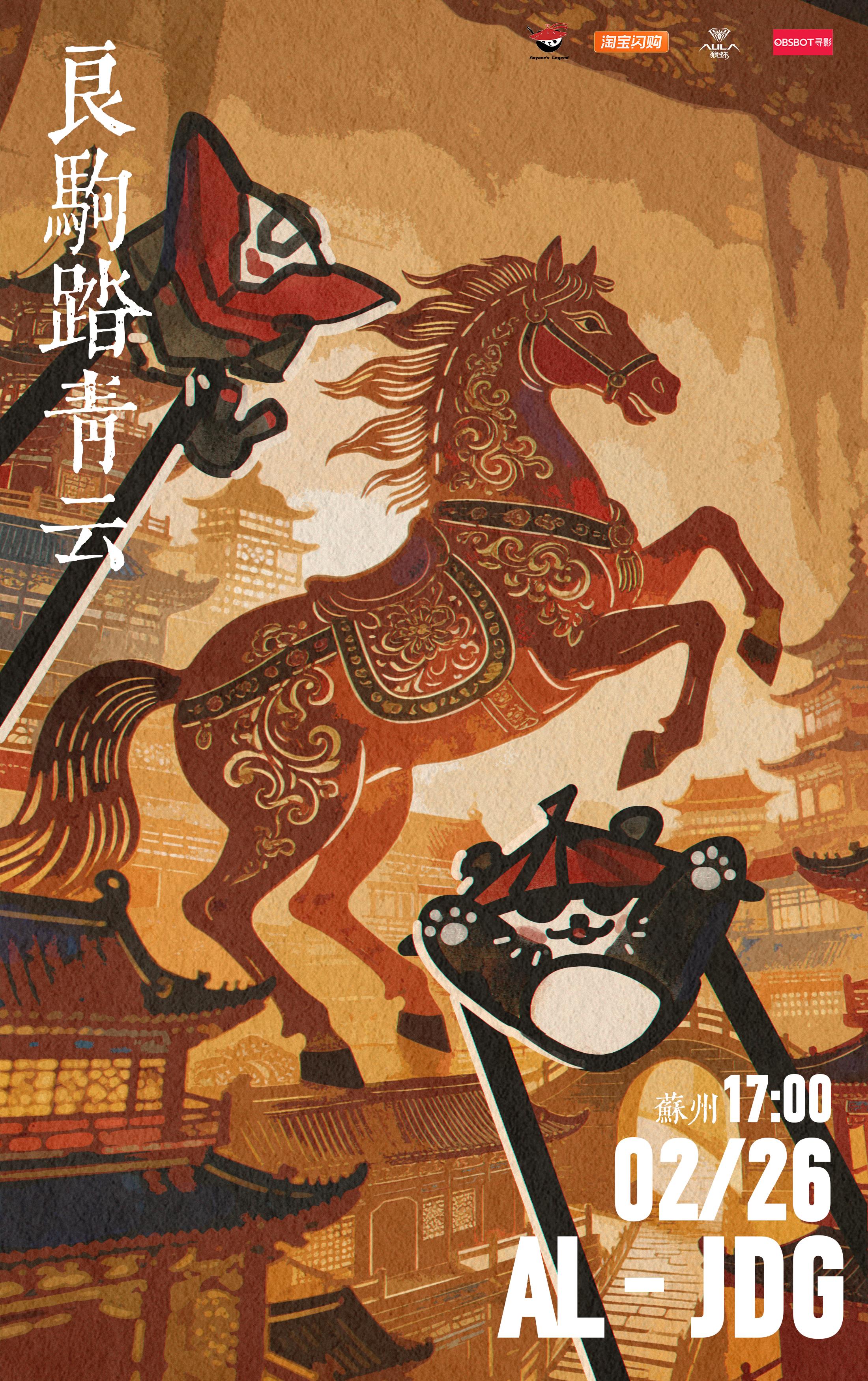 JDG对阵AL赛前海报:良驹踏青云;聚焦