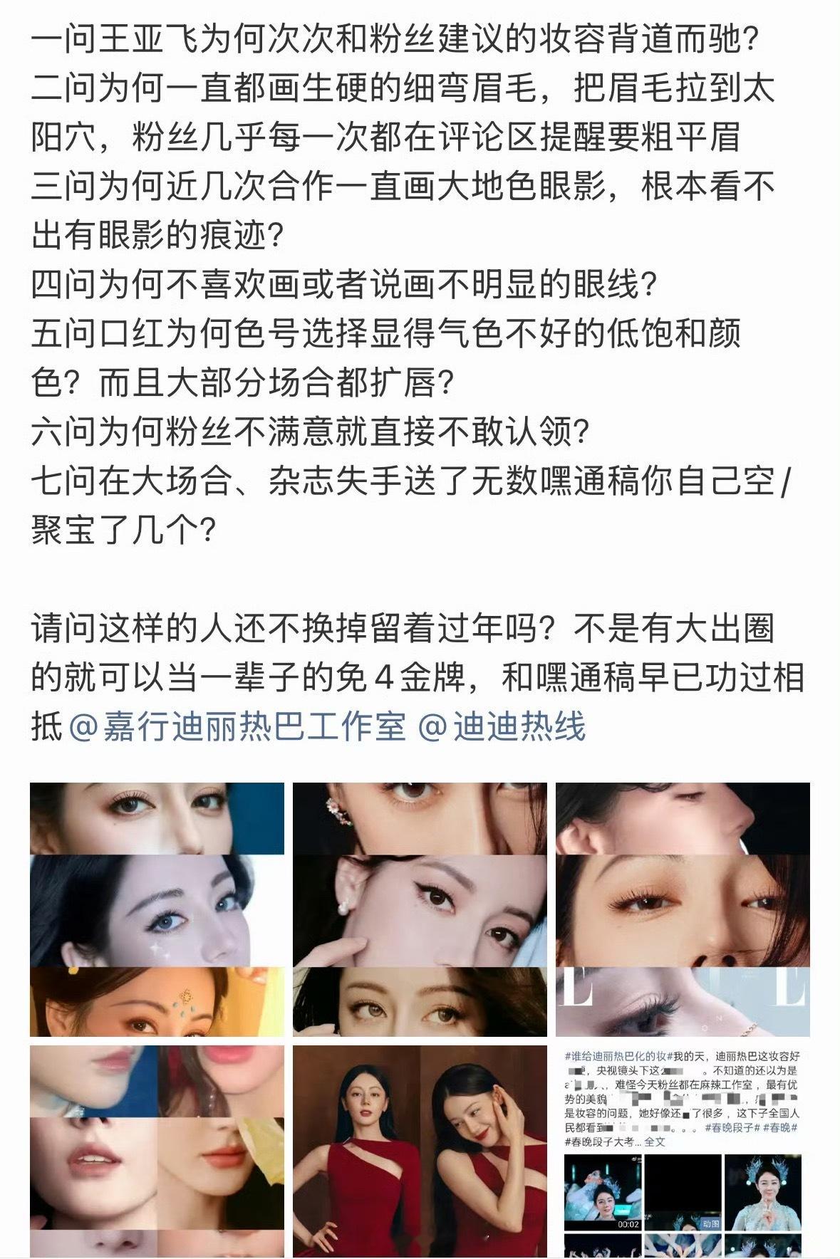 王亚飞 迪丽热巴巴粉不满王亚飞为迪丽热巴画的妆容,要求更换化妆师,更想要金鹤龙。