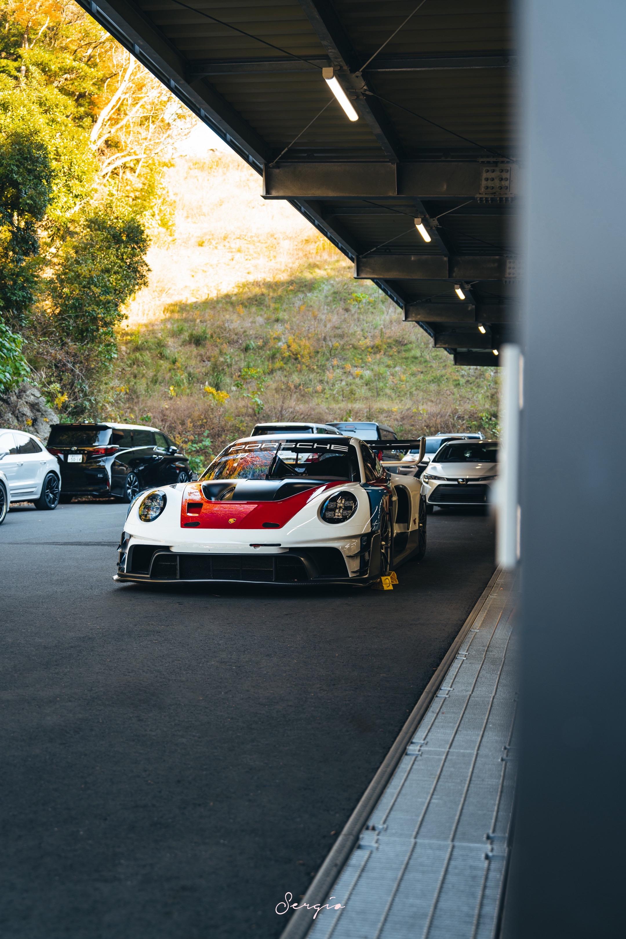 食物链最顶端的911 Rennsport.终于在Magarigawa见到了这台全球限量77台的Rennsport,Rennsport的本质是没有任何BOP限制的GT3R赛车,仅供玩家们买来当赛道玩具使用,不得不说这个外观设计真的太帅了,比正常GT3R还要帅