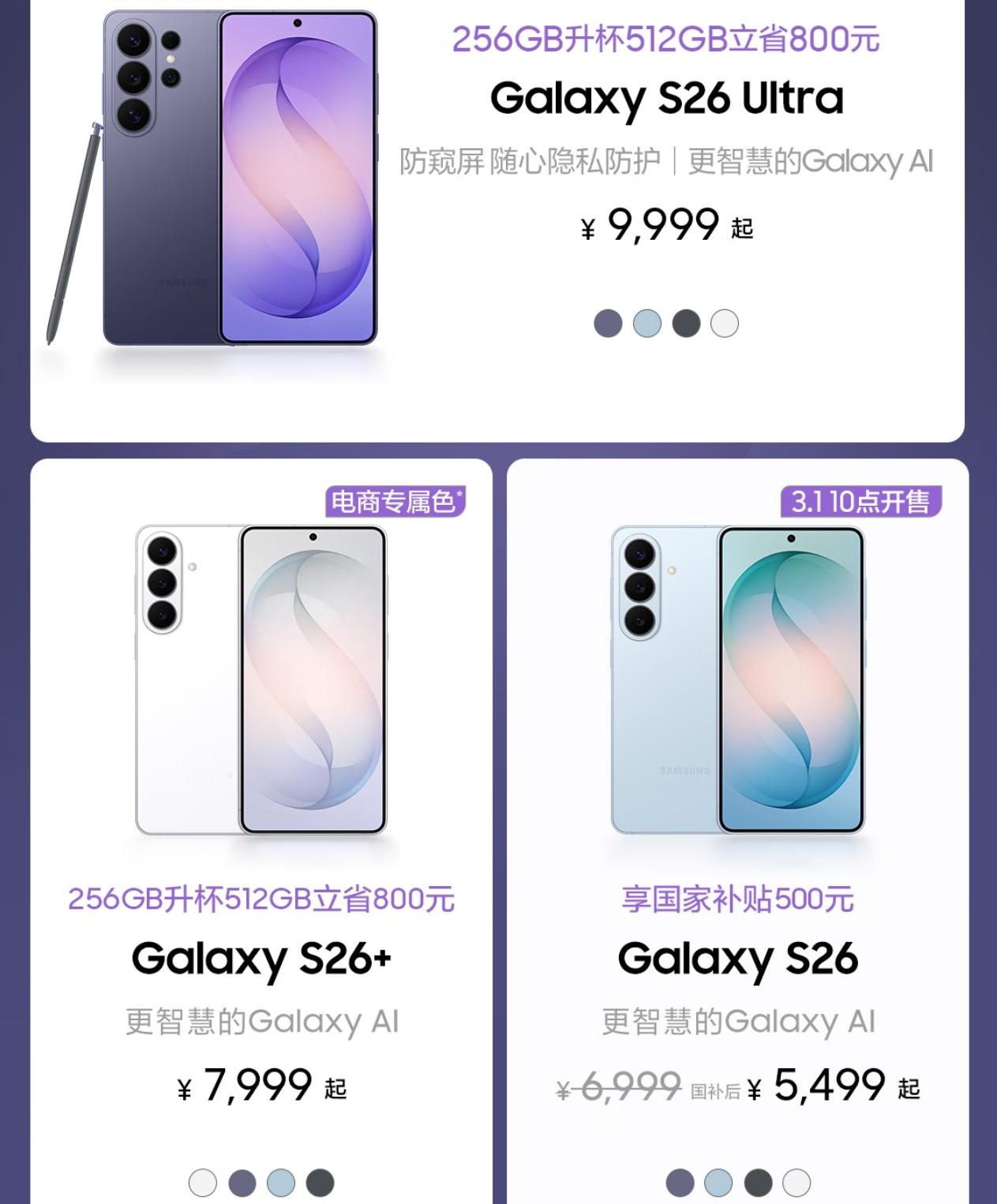 三星GalaxyS26系列价格给你们把各个配置和价格总结一下!