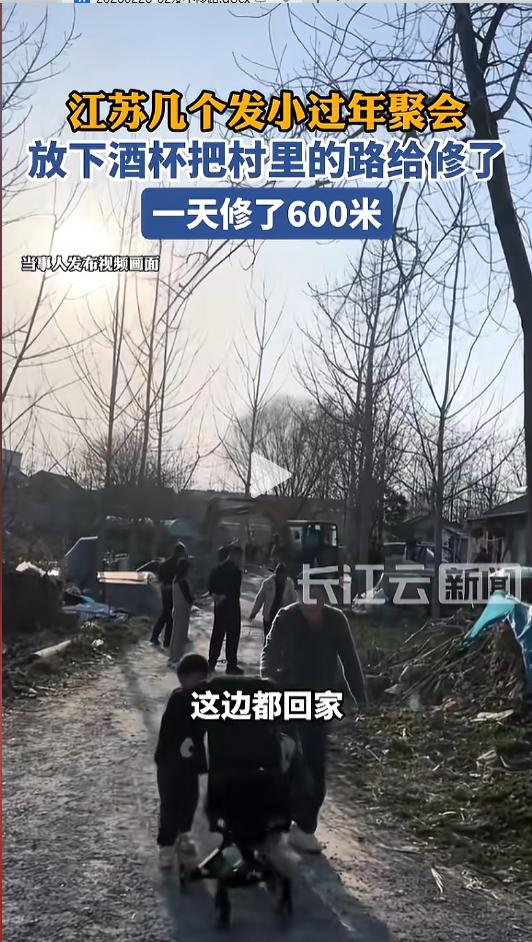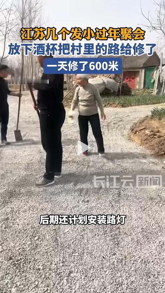 “满满的正能量!”近日,江苏邳州,几个发小过年期间回村里聚会,席间聊起他们小时候搁路上玩的事情,一想到现在村里那条泥巴路,几个人心头一动。村里面都是老人,这条路肯定不方便雏形,不如给重新修一下。网友:都是新时代好青年! 据媒体2月23日报道,他们这群发小一共12个人,平时都在外地打工。今年过年,他们好不容易回村聚在了一起。吃饭喝酒的时候,他们提起了村里的路。自己小时候就在这条路上玩耍,现在也有点破破烂烂的了。 他们几个人长年累月的都搁外面,村里都是老人,这条路还是泥巴路,太不好走了,不如给重新整一整,以后家里人出门也更方便。 几个人一拍即合,说干就干,酒也不喝了,饭也不吃了,当即就联系了施工队,又叫来了挖掘机。 他们先是让挖掘机把原来的路两边重新整了整,拓宽了一两米,然后又拉来了石子,均匀的铺在上面。一天左右的时间,就修好了600米,村里老人都说,这回路好走了。 几个人看到这一幕,心里也止不住自豪起来,“能为家乡做些力所能及的事情,我们也很高兴”。后续他们还准备再给这条路安上路灯,让出行更加方便。 网友看后表示,吃水不忘挖井人,出村也不忘自己的根。可能他们做的这些成绩算不上伟大,但却实实在在为家乡做了好事,做了实事,给他们点一个大大的赞! 信息来源:《江苏几个发小过年聚会,放下酒杯把村里的路给修了》长江云新闻