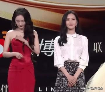 杨幂和刘诗诗一起上台领奖,杨幂一身大红色露肩拖地长裙,身材婀娜多姿,长发飘飘,而一旁的刘诗诗打扮素雅,白上衣,黑白相间的长裙,走向台时还搀扶着杨幂,俨然成了杨幂的小跟班。 杨幂这身红裙耀眼夺目,再加上她走路时傲娇的姿态,到哪都是一个大女主。