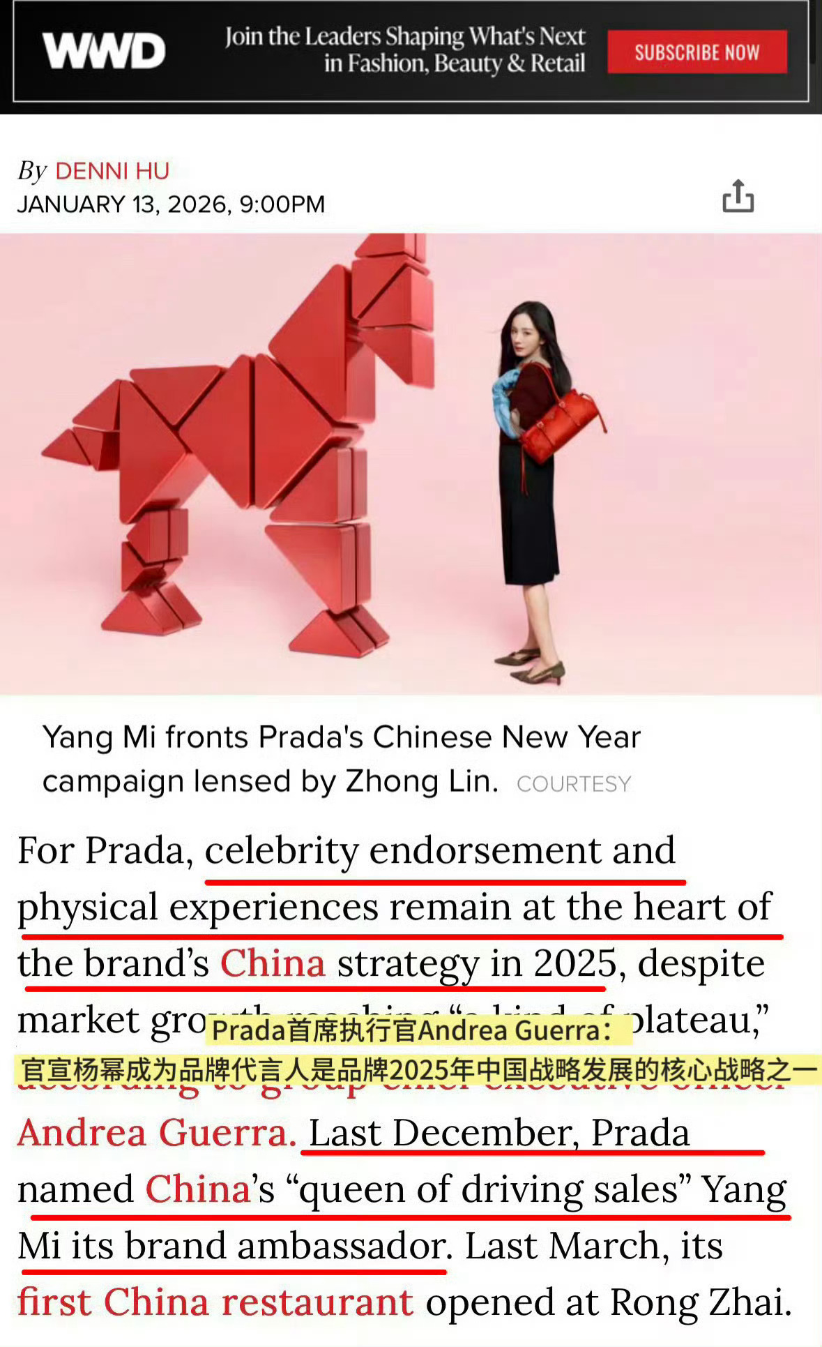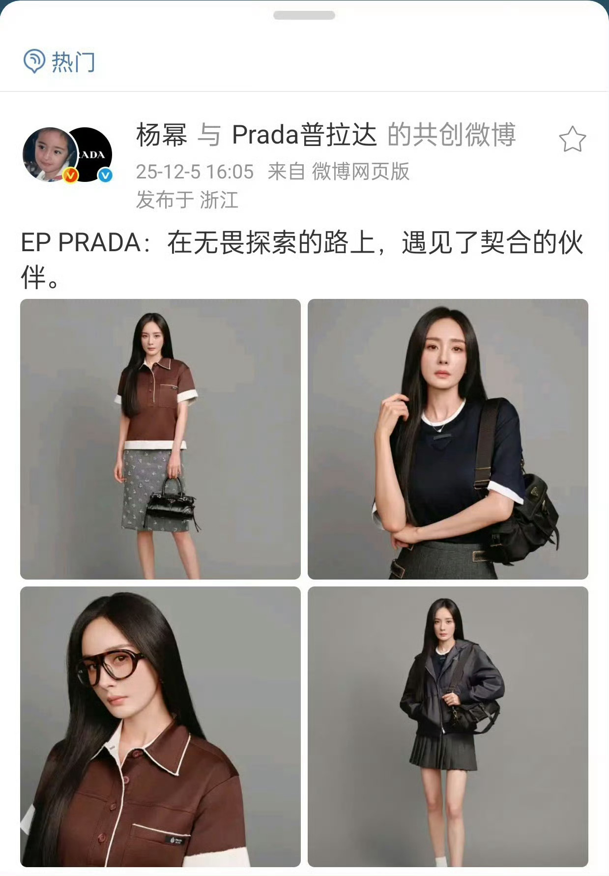 Prada代言人杨幂杨幂真prada女王,每一张图都像时尚大片啊,状态太好了。而且prada给杨幂的待遇真的好,Prada官宣和春节广告由WWD率先发布,短短三个月已经为杨幂推封Vogue、时尚芭莎,开年广告地广全球刷脸,杨幂有作品有国民度,我只能说是prada有眼光。