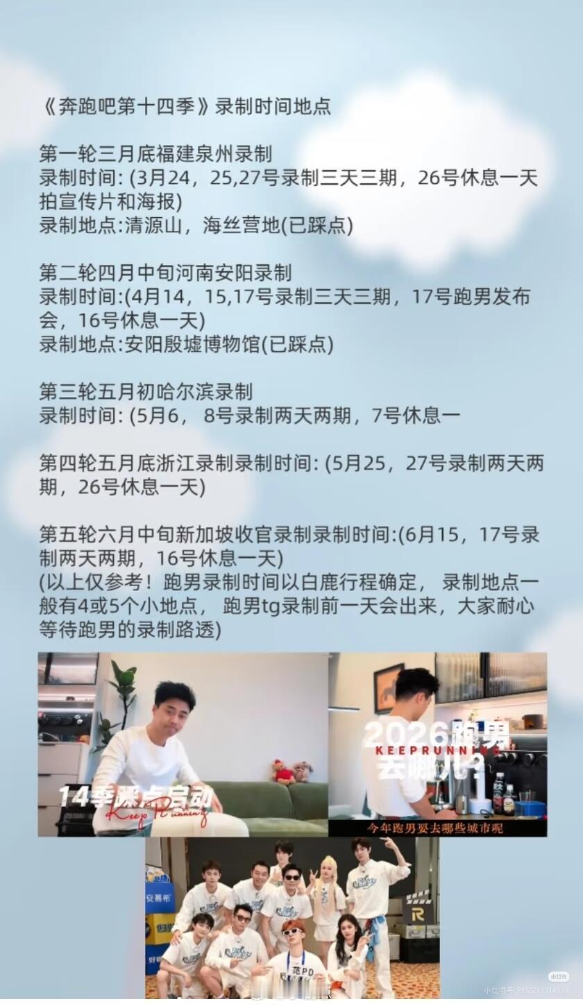 奔跑吧14这次应该比较真实了,是跑男导演发的,这样看的话,周深,孟子义等等都有参加。第一期是在咱福建泉州。希望这一季能更加有激情吧,感觉单纯看撕名牌就很好看,不用每次为了创新加额外的规则,这导致好多嘉宾好不容易来一趟又没撕成名牌(如:王鹤棣,李荣浩,蒋龙,武大靖等等)