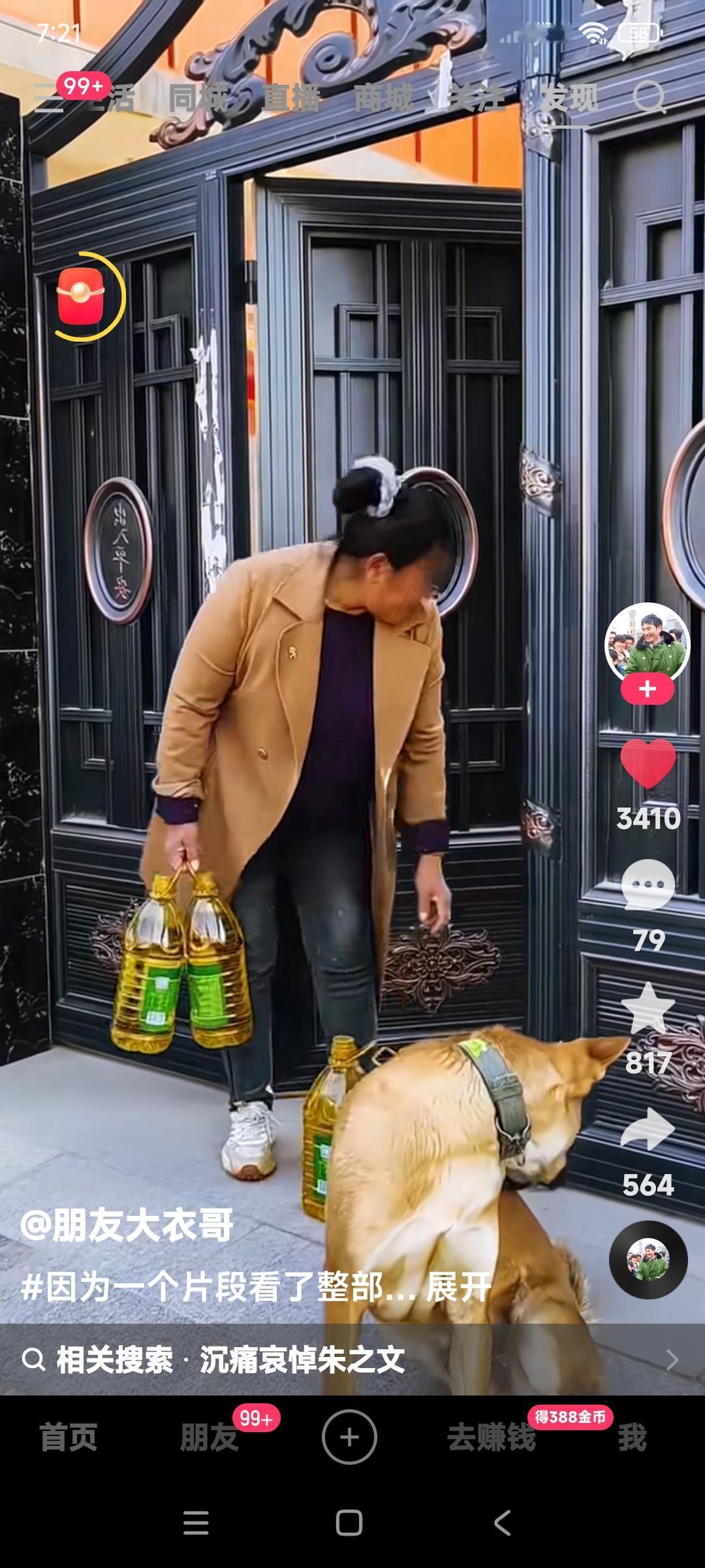 大衣哥朱之文家有这么大的一条黄狗。 我敢说这条狗跟它家主人朱之文的性格有一拼。 因为外边儿的人到他家,连敲门带踹门。为什么不叫唤呢? 所以说朱之文家的人都这么老实,连他家养的狗都不咬人。 善良老实的人家,连狗都善良老实。 积善之家必有余庆。积恶之人必有余殃。