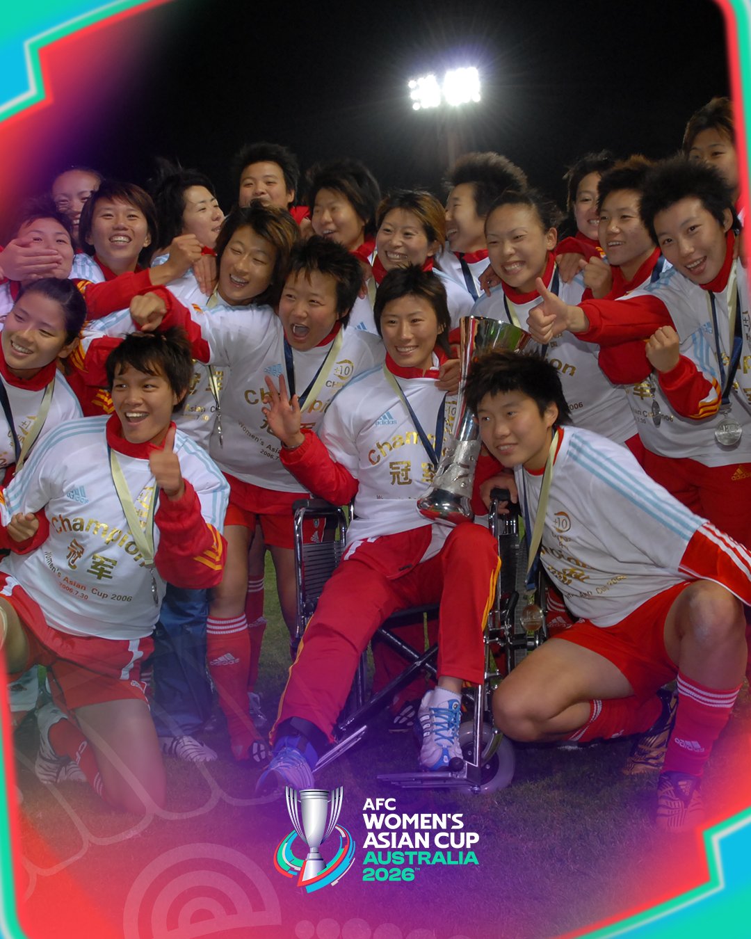 中国女足在2006女足亚洲杯决赛常规时间中2-2战平澳大利亚,点球大战中马晓旭、毕妍、李洁、韩端四罚全中,最终中国女足点球4-2战胜东道主澳大利亚,获得队史第八座亚洲杯冠军。