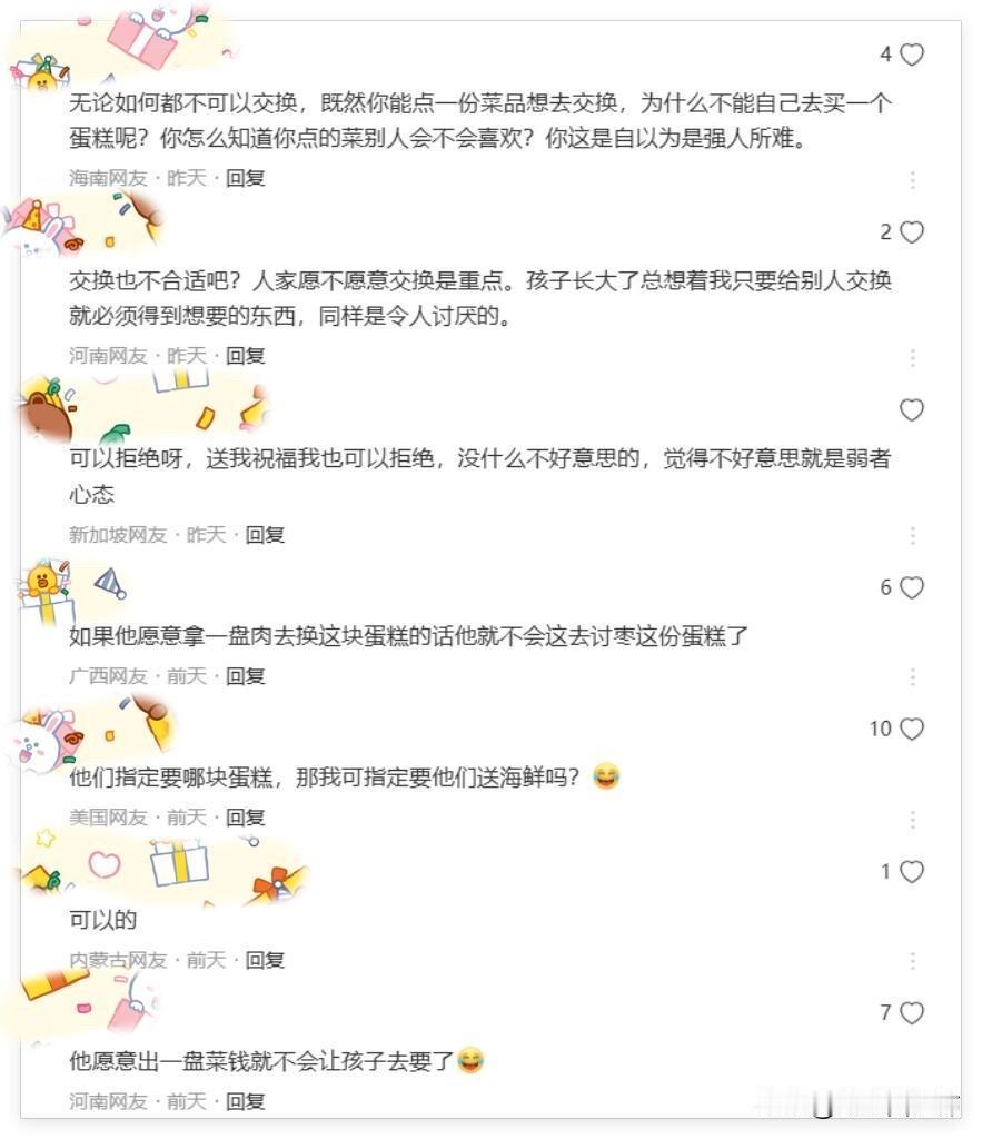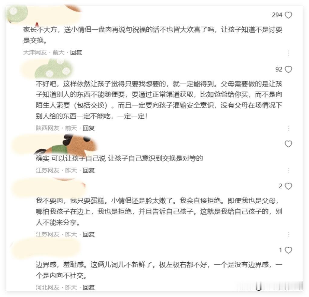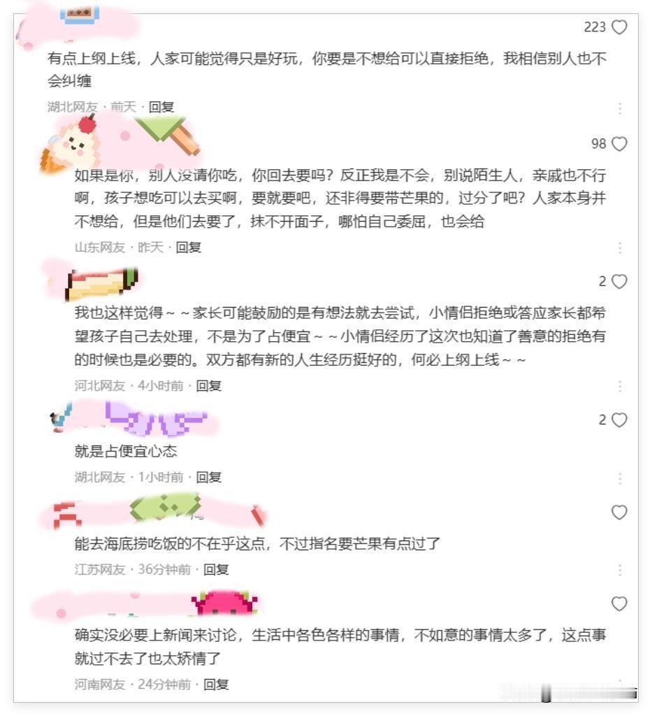 有人指责那位爸爸没有边界感,有人同情情侣的“被迫分享”,也有人觉得给都给了,事后上网吐槽显得不大气。